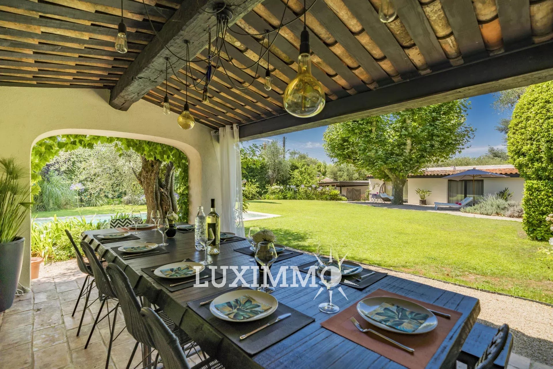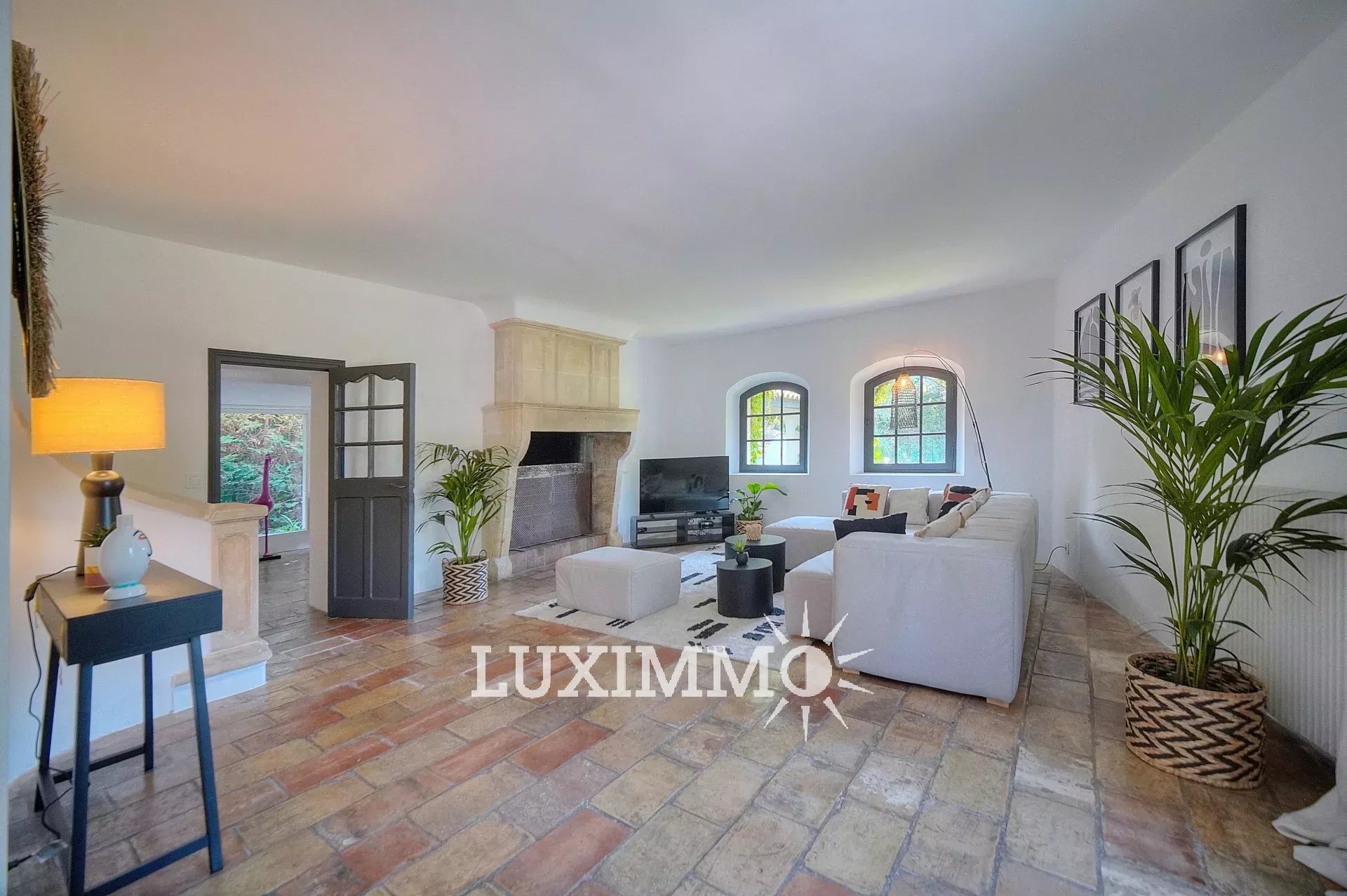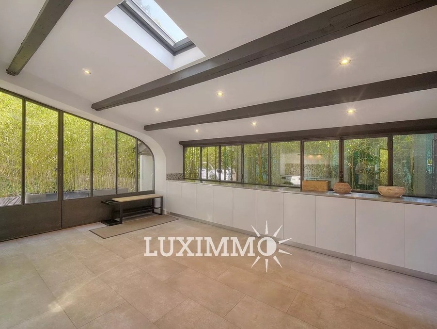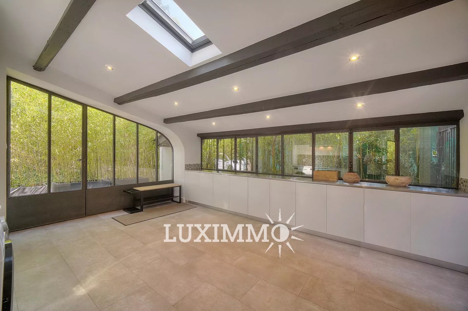 MOUGINS - Située dans un domaine sécurisé, au calme absolu, ce mas de 280m² env. entièrement rénovée avec des matériaux de qualité, est édifiée sur un terrain de 1189m2 avec piscine chauffée.