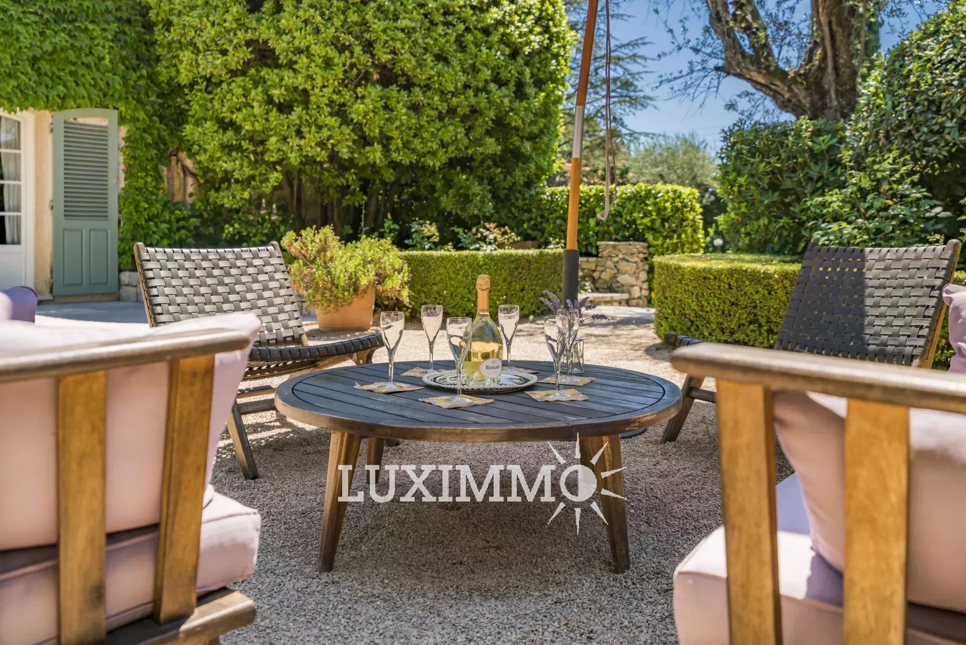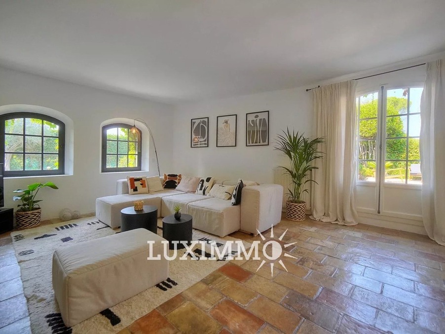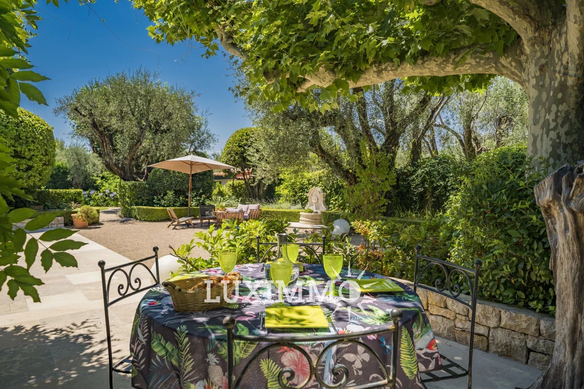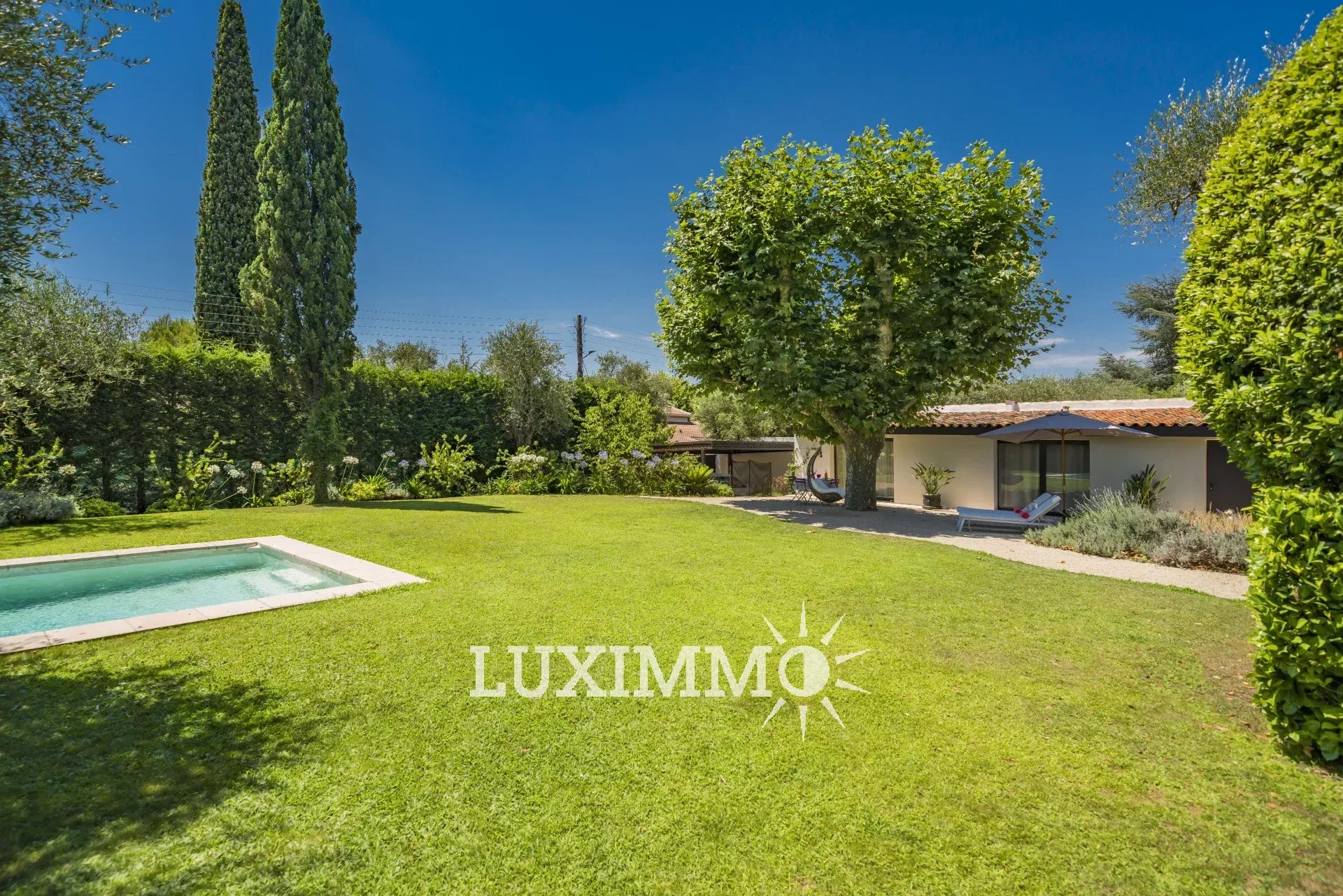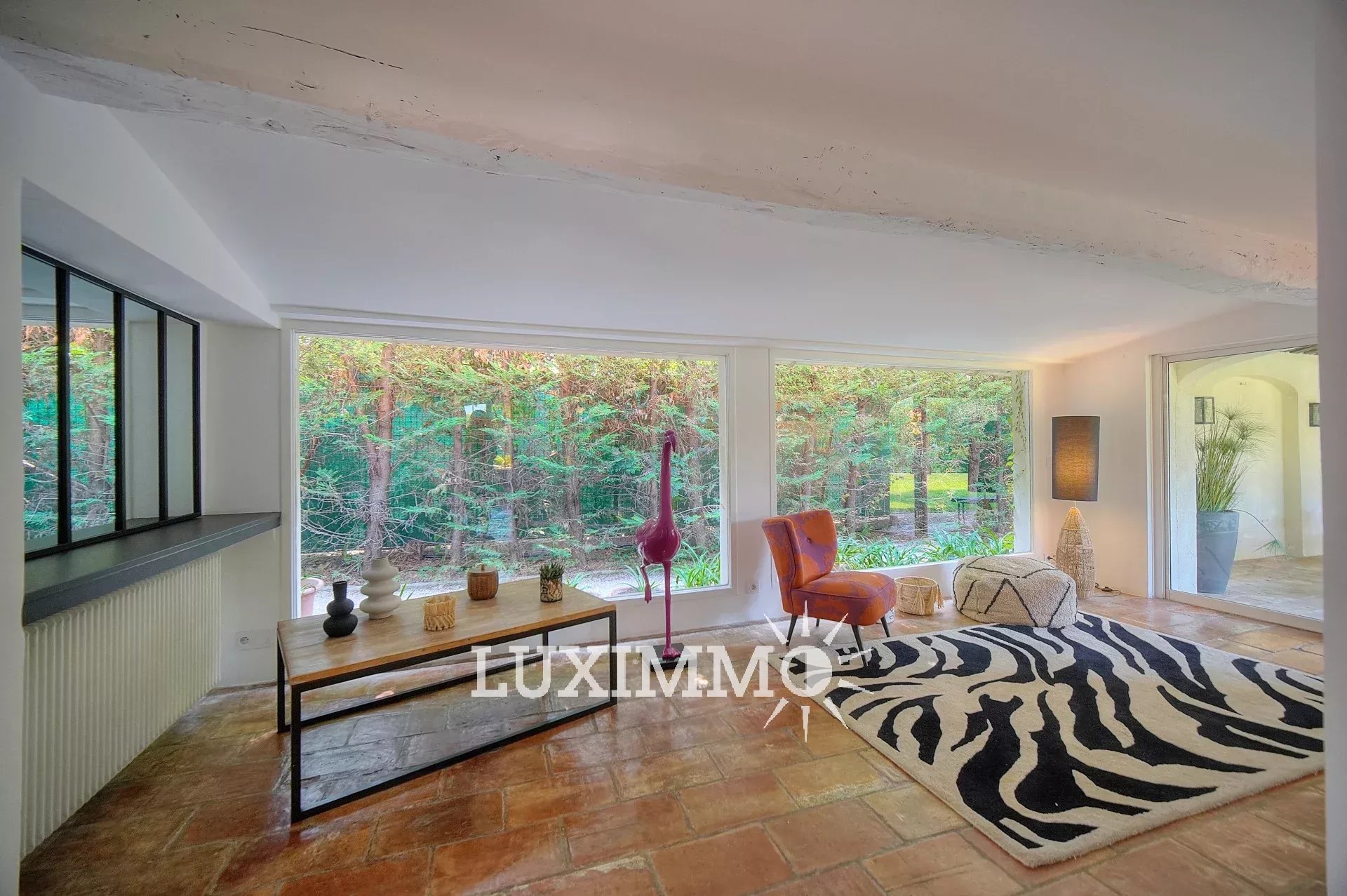 MOUGINS - Située dans un domaine sécurisé, au calme absolu, ce mas de 280m² env. entièrement rénovée avec des matériaux de qualité, est édifiée sur un terrain de 1189m2 avec piscine chauffée.