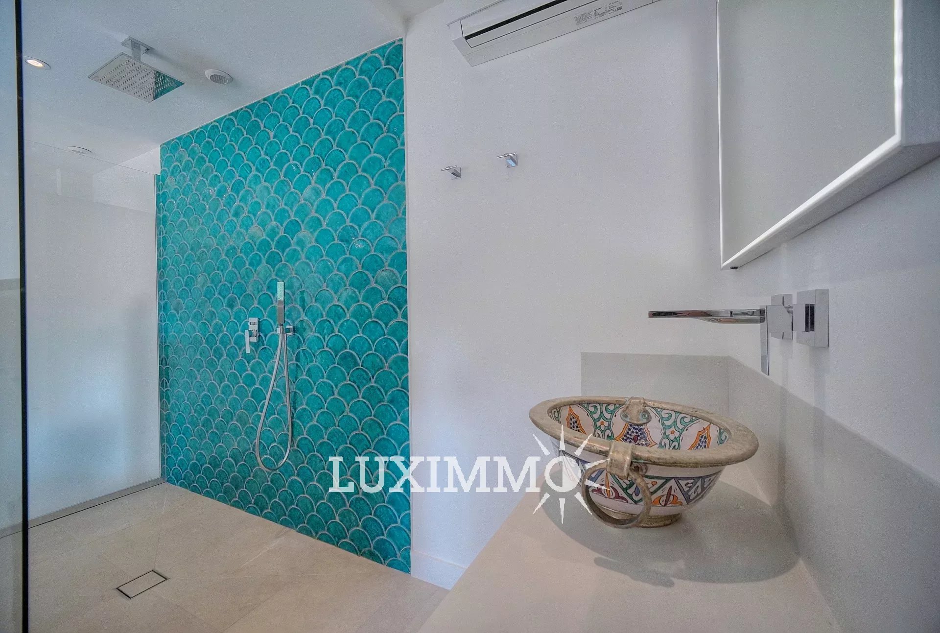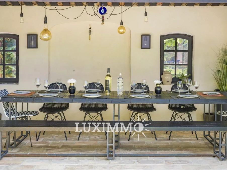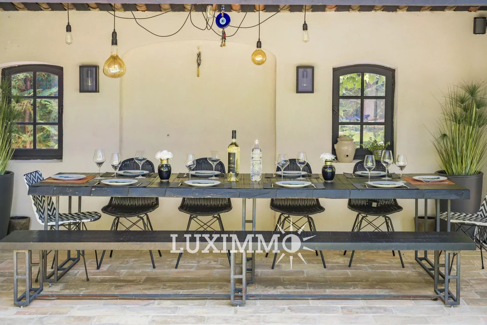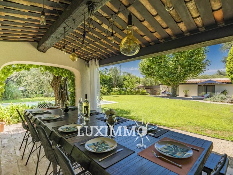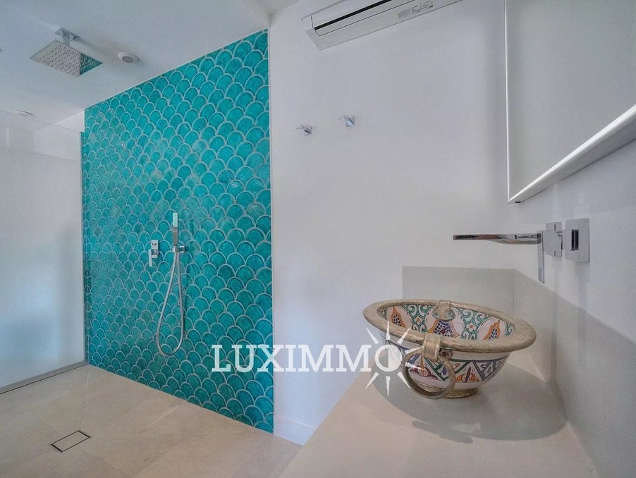 MOUGINS - Située dans un domaine sécurisé, au calme absolu, ce mas de 280m² env. entièrement rénovée avec des matériaux de qualité, est édifiée sur un terrain de 1189m2 avec piscine chauffée.