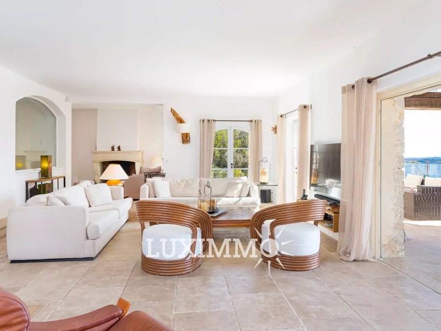 De larges baies vitrées en galandage donnant sur des terrasses, dalles de pierres et chauffage au sol, climatisation centralisée, toutes les chambres de type master dont la principale très vaste donnant sur une terrasse "tropézienne" offrant une vue dominante sur les pinèdes environnante et la mer..