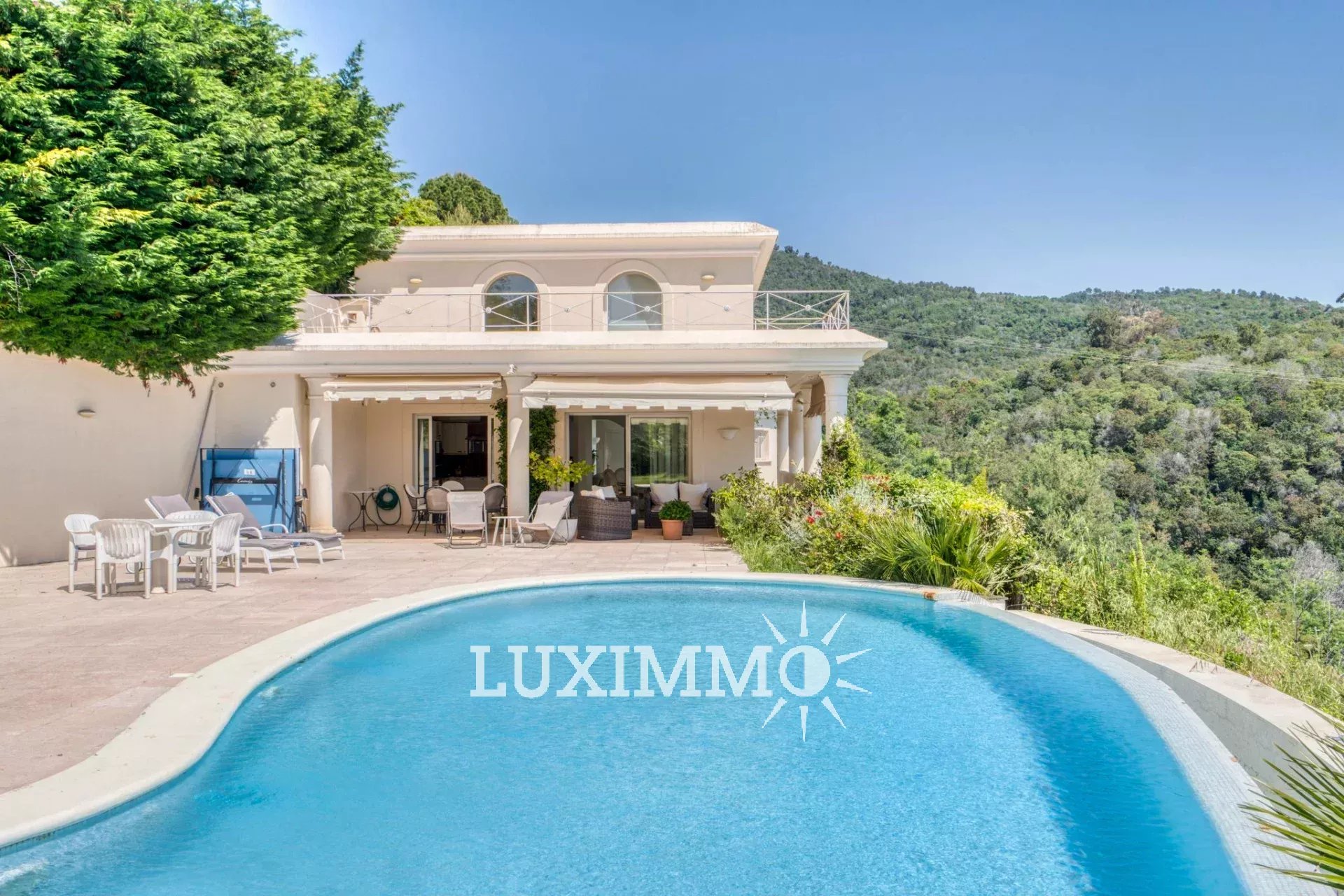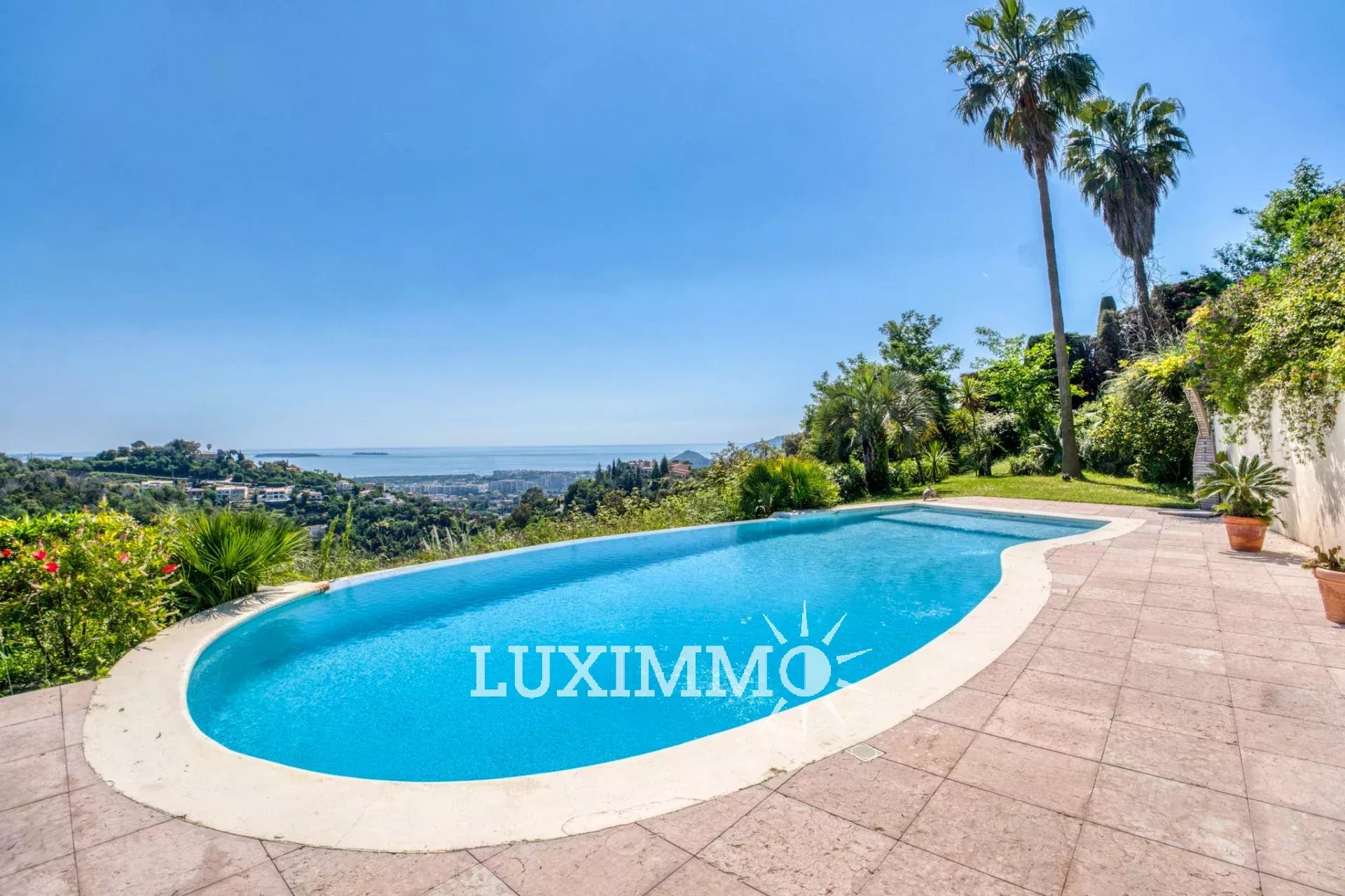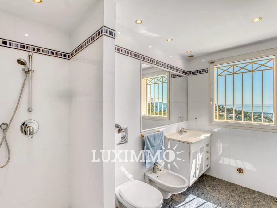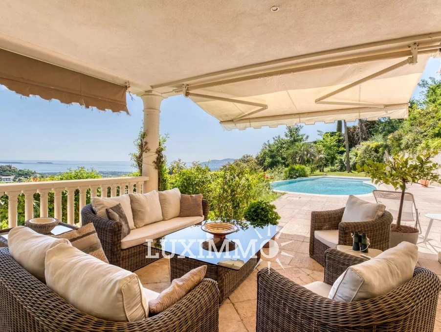Mandelieu - Située dans un domaine sécurisé avec gardien 24h/24, avec tennis, et bénéficiant d'une vue mer panoramique, cette villa de 280 m² habitable est édifiée sur un terrain de 3862 m² avec piscine.