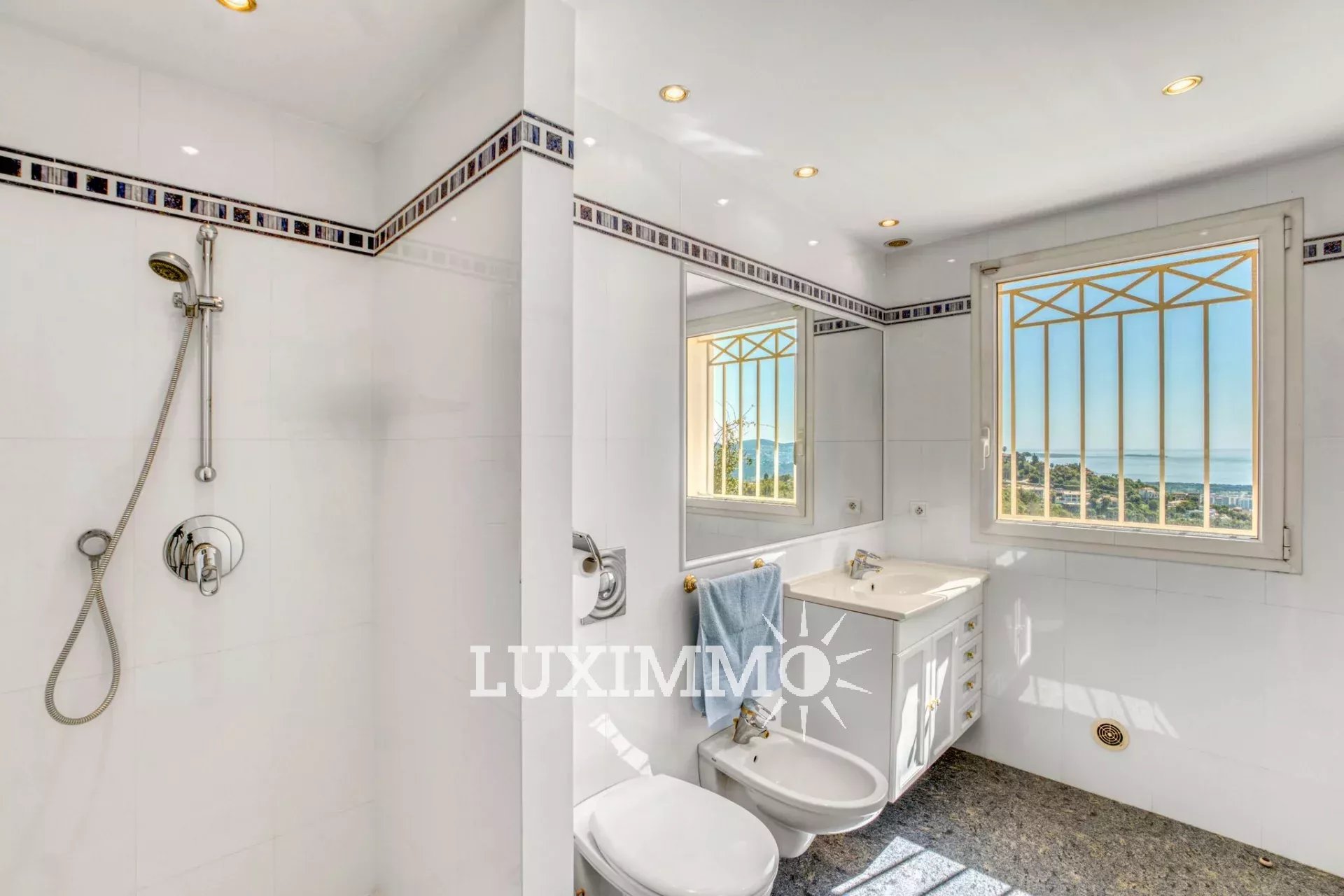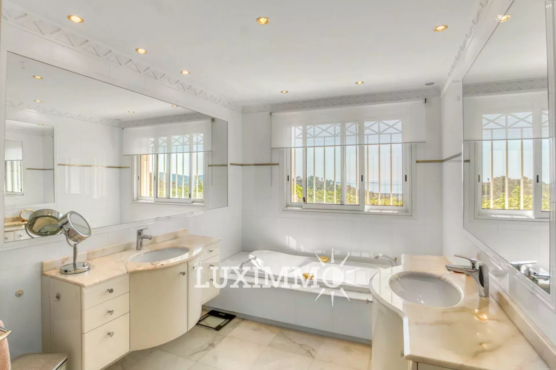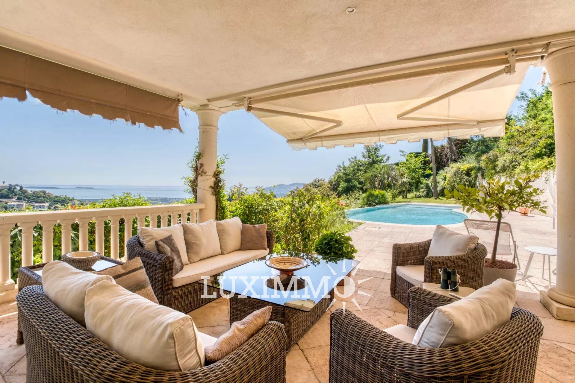 Mandelieu - Située dans un domaine sécurisé avec gardien 24h/24, avec tennis, et bénéficiant d'une vue mer panoramique, cette villa de 280 m² habitable est édifiée sur un terrain de 3862 m² avec piscine.