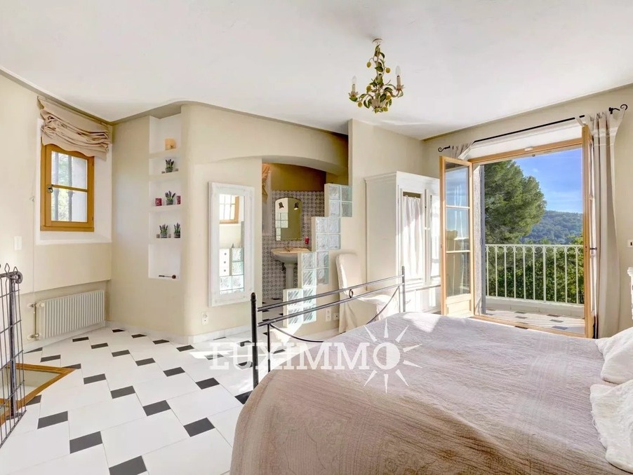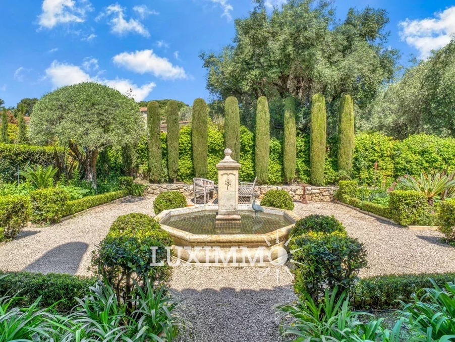 MOUGINS - Située au pied du village, à l'abri des regards, avec vue panoramique mer et collines, cette bastide provençale de 480m² env., est édifiée sur un terrain de 4200m² env. avec piscine.