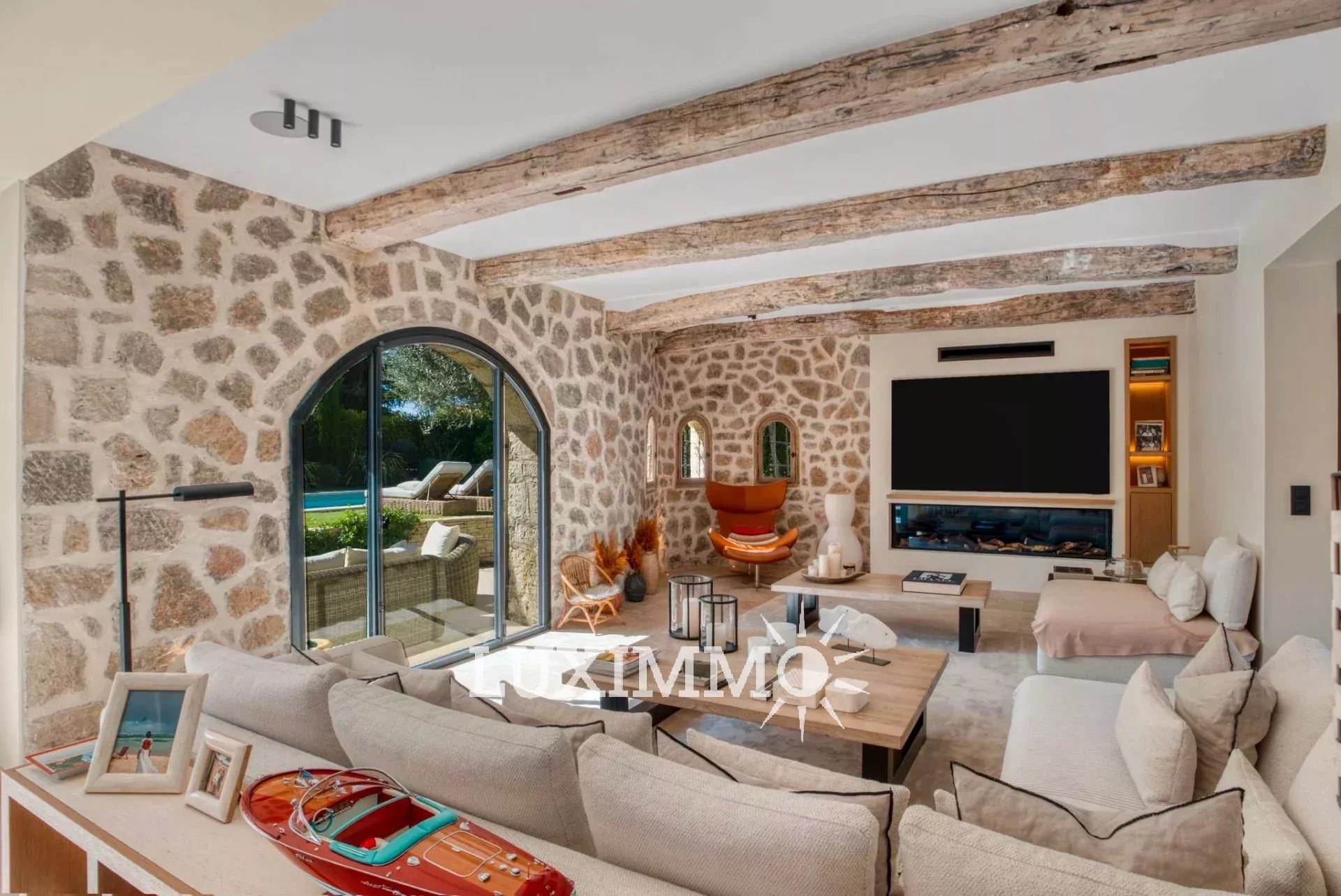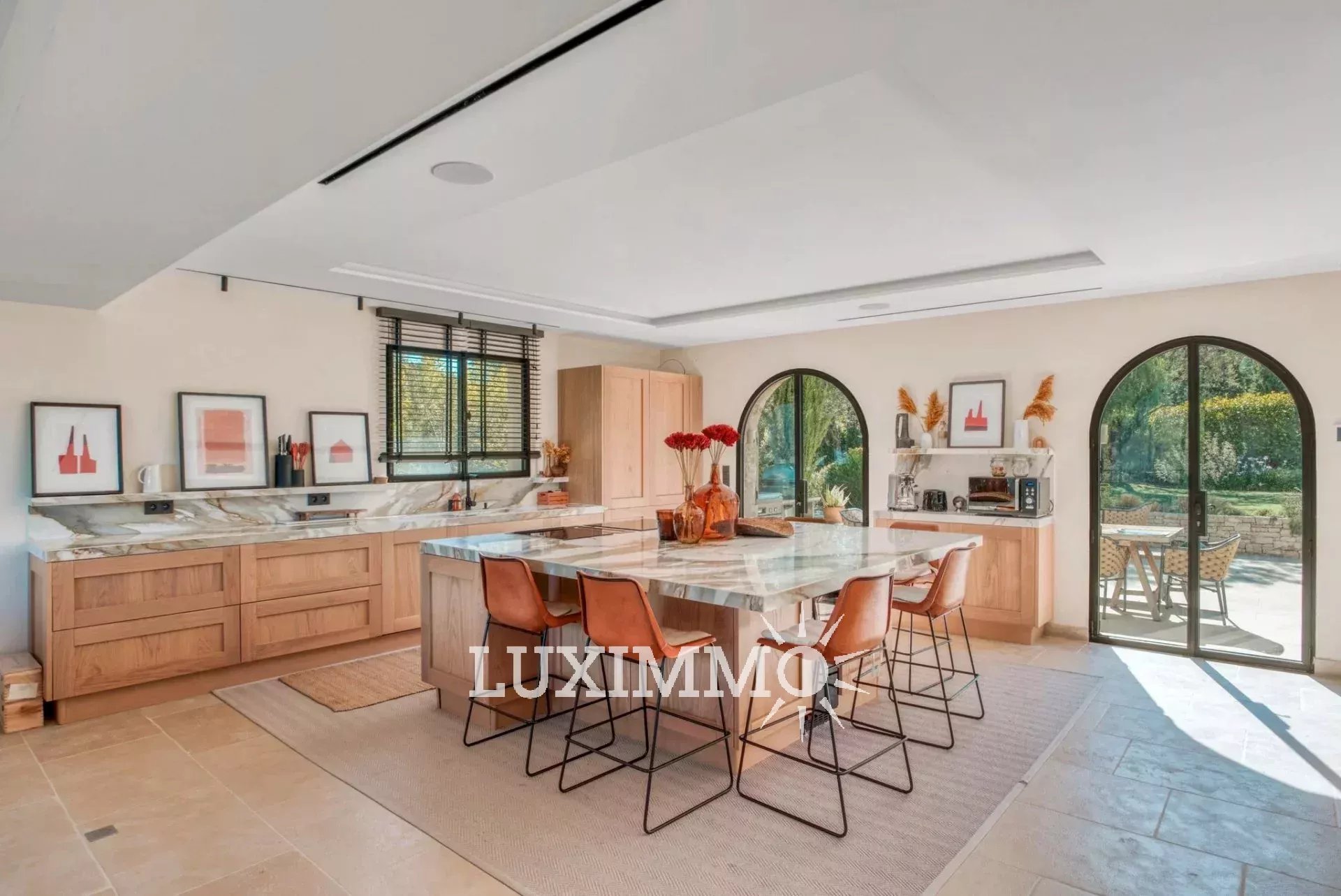 MOUGINS - Située dans un environnement verdoyant, à proximité immédiate des premiers commerces, cette villa de 265m² est entièrement rénovée avec des matériaux de qualité. Elle est édifiée sur un terrain paysager de 1800 m² avec piscine.