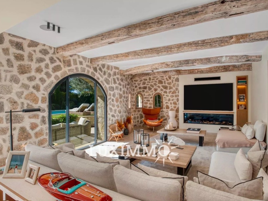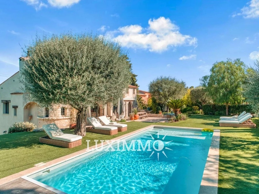 MOUGINS - Située dans un environnement verdoyant, à proximité immédiate des premiers commerces, cette villa de 265m² est entièrement rénovée avec des matériaux de qualité. Elle est édifiée sur un terrain paysager de 1800 m² avec piscine.