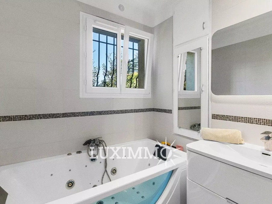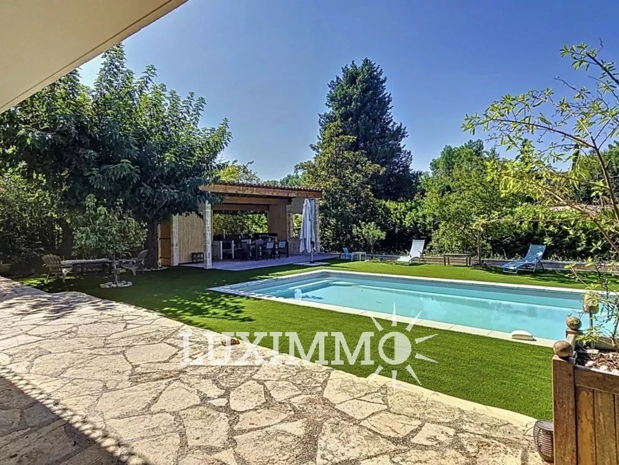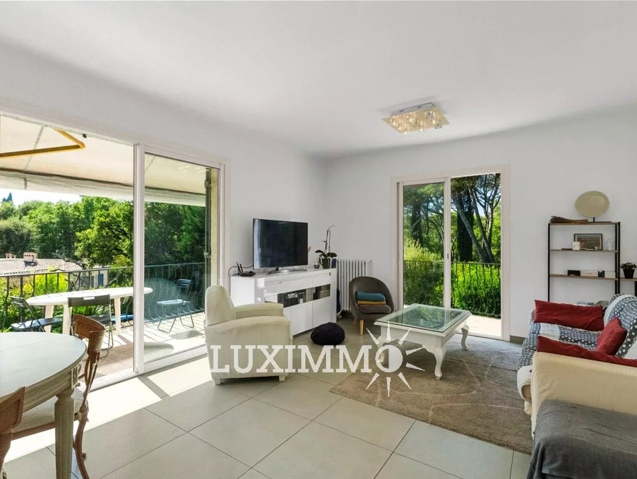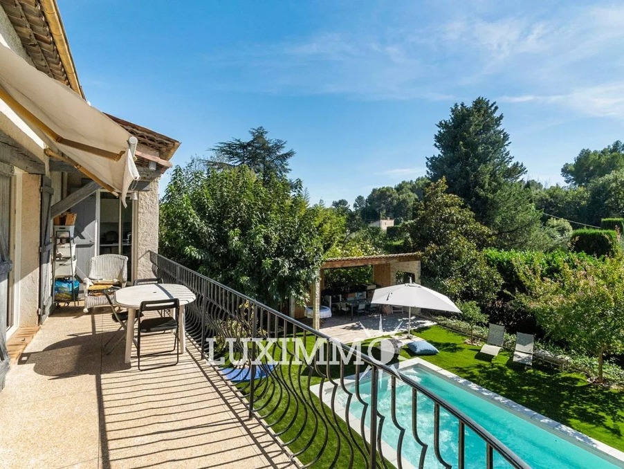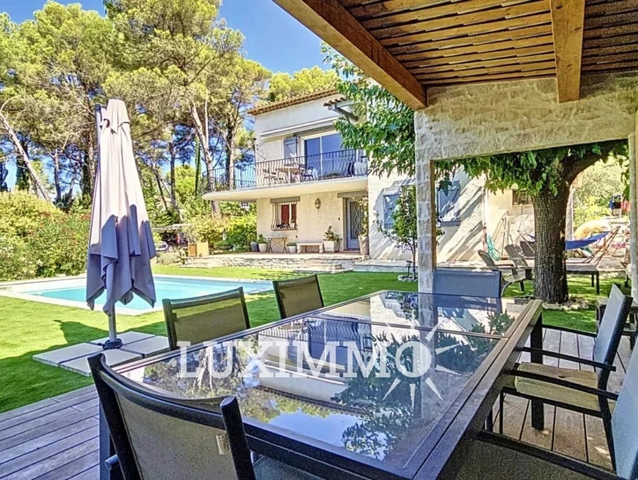 MOUANS-SARTOUX - Située dans un quartier résidentiel au calme absolu, villa d'une superficie de 160m2 env. édifiée sur un terrain d'env. 1480m2 avec piscine au sel.