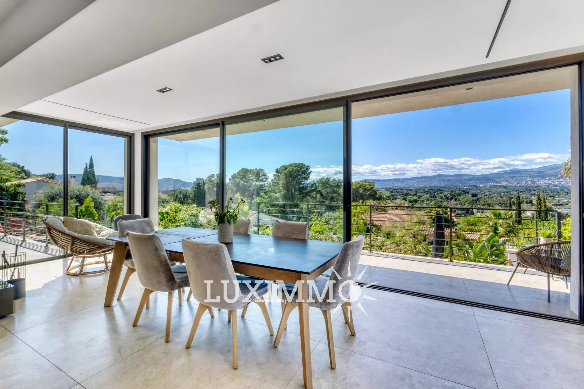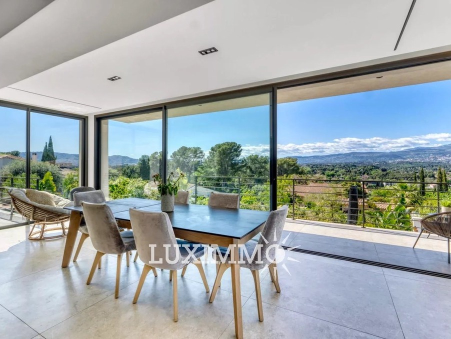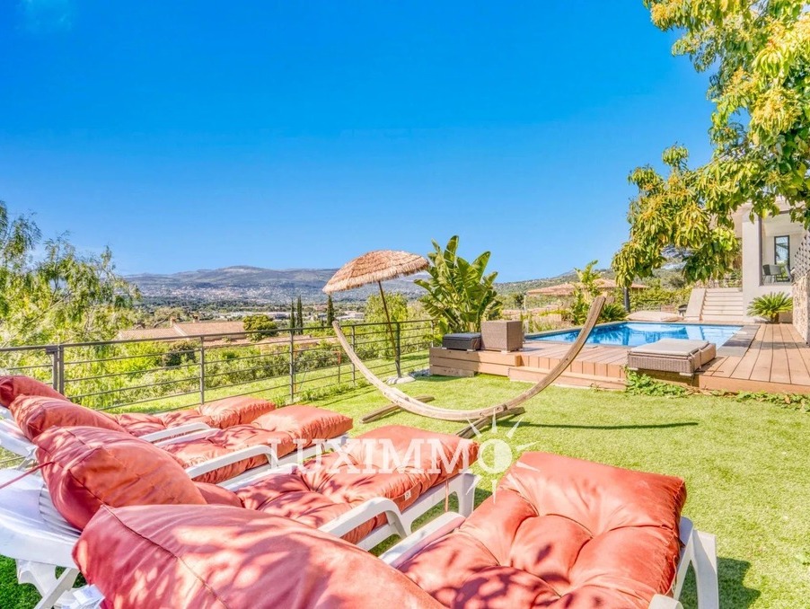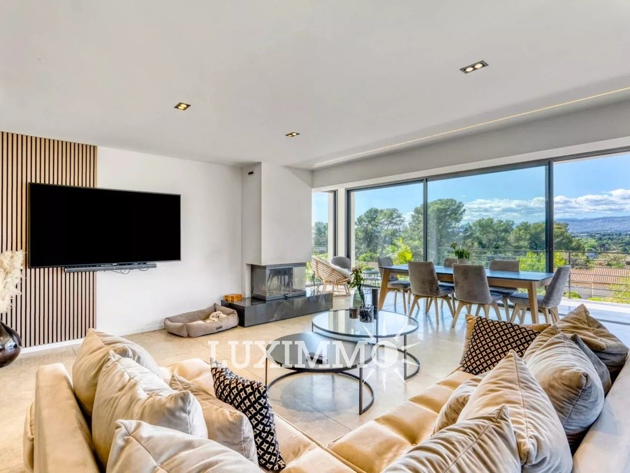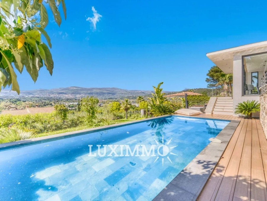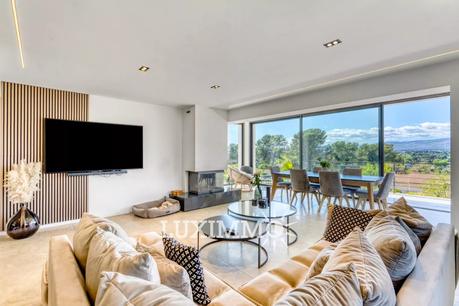 MOUGINS - Située en position dominante, au calme, bénéficiant d'une vue panoramique sur les collines environnantes, villa moderne d'une superficie de 260m2 édifiée sur un terrain de 1868m2 avec une piscine.