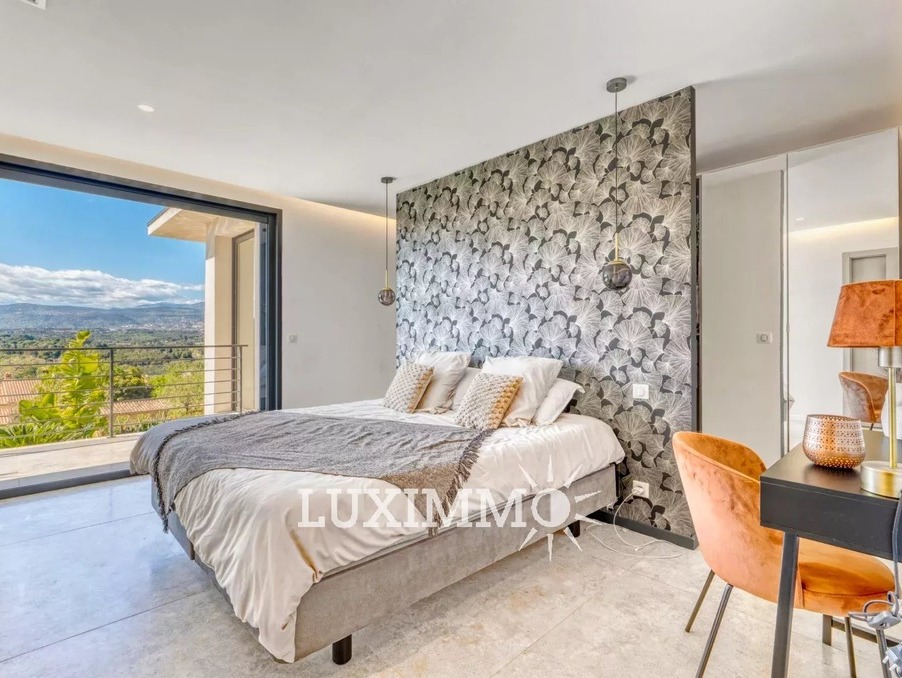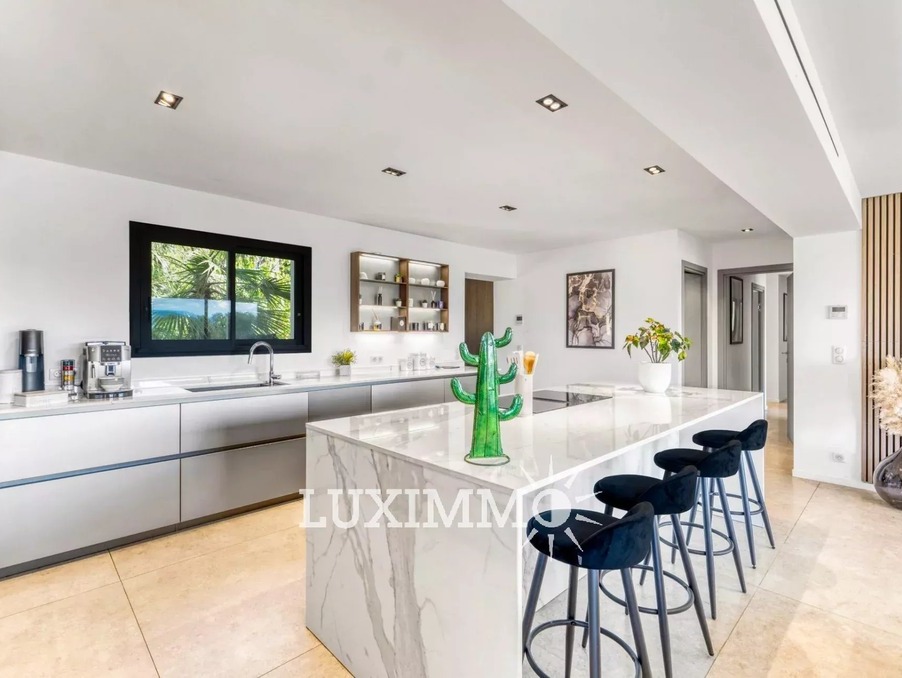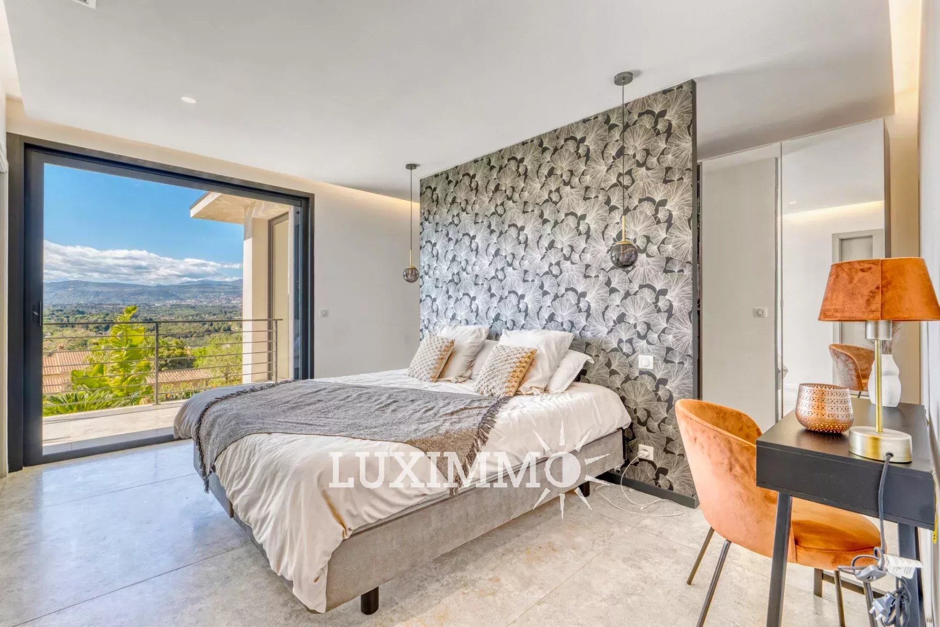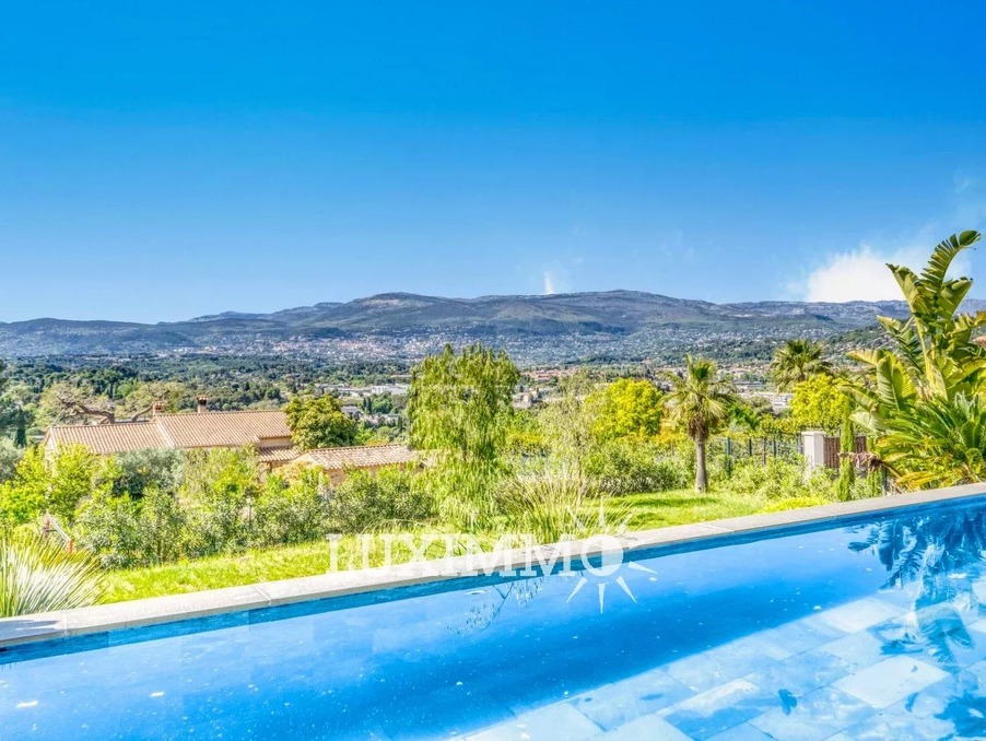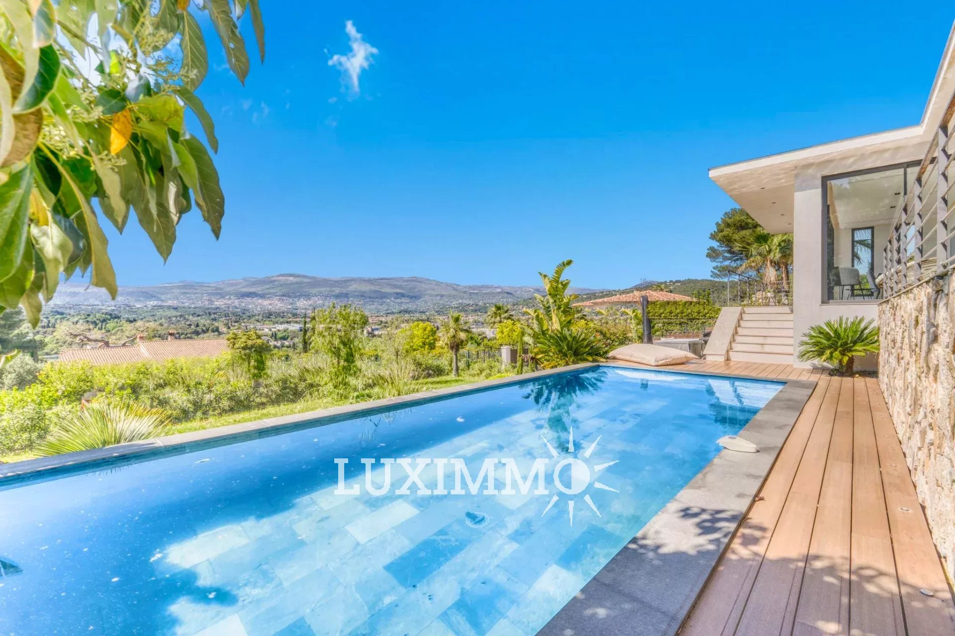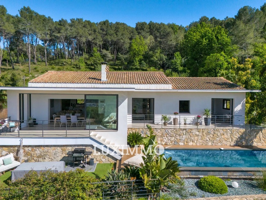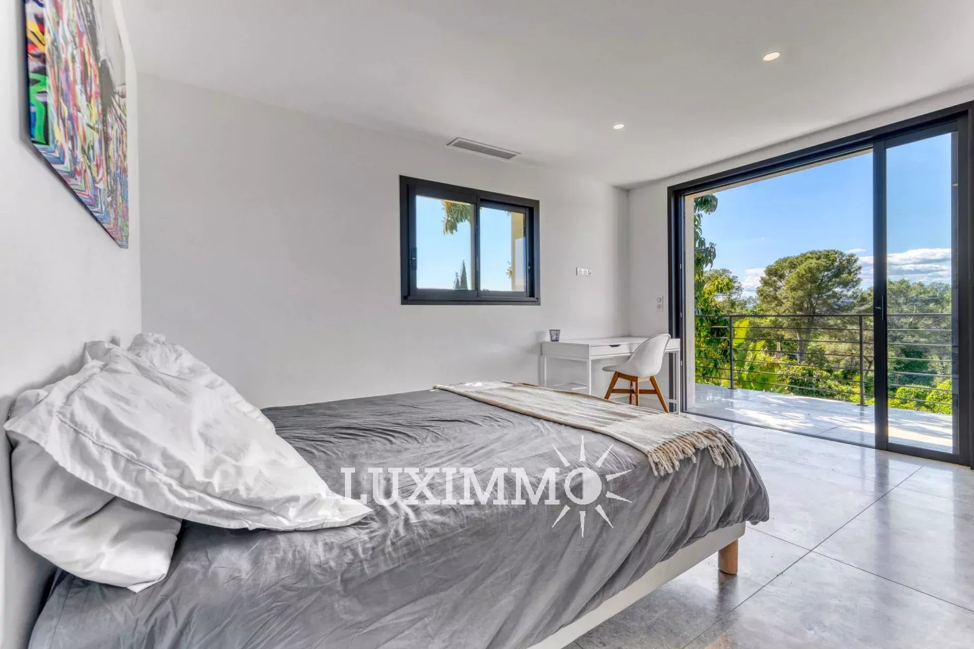 MOUGINS - Située en position dominante, au calme, bénéficiant d'une vue panoramique sur les collines environnantes, villa moderne d'une superficie de 260m2 édifiée sur un terrain de 1868m2 avec une piscine.
