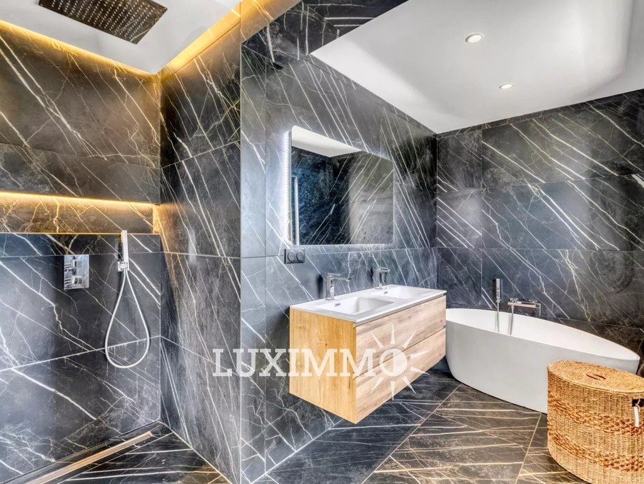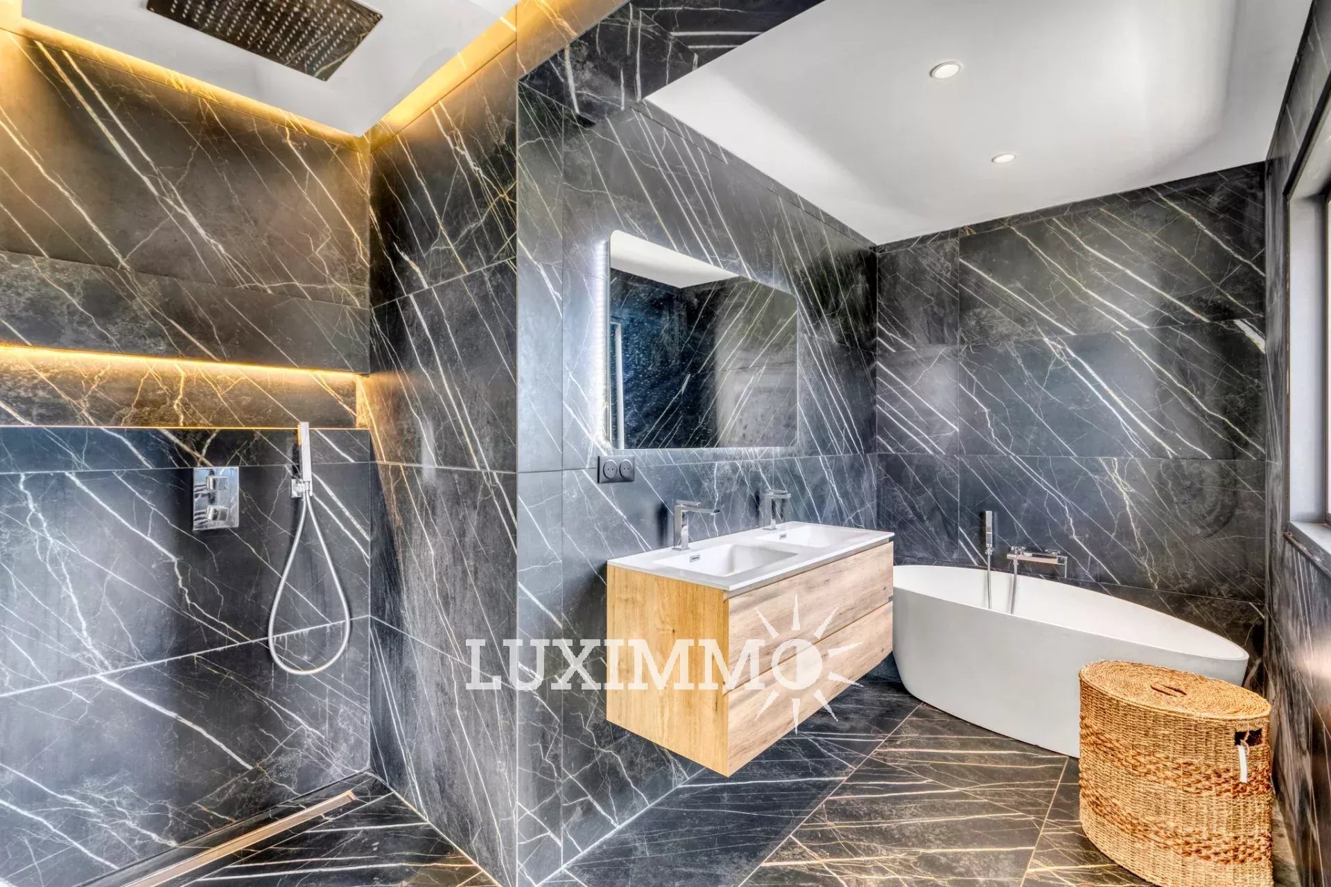 Au niveau principal : un large salon-séjour, 1 cuisine entièrement équipée, 1 master avec salle de bains et dressing, 2chambres en suite et 1 bureau.