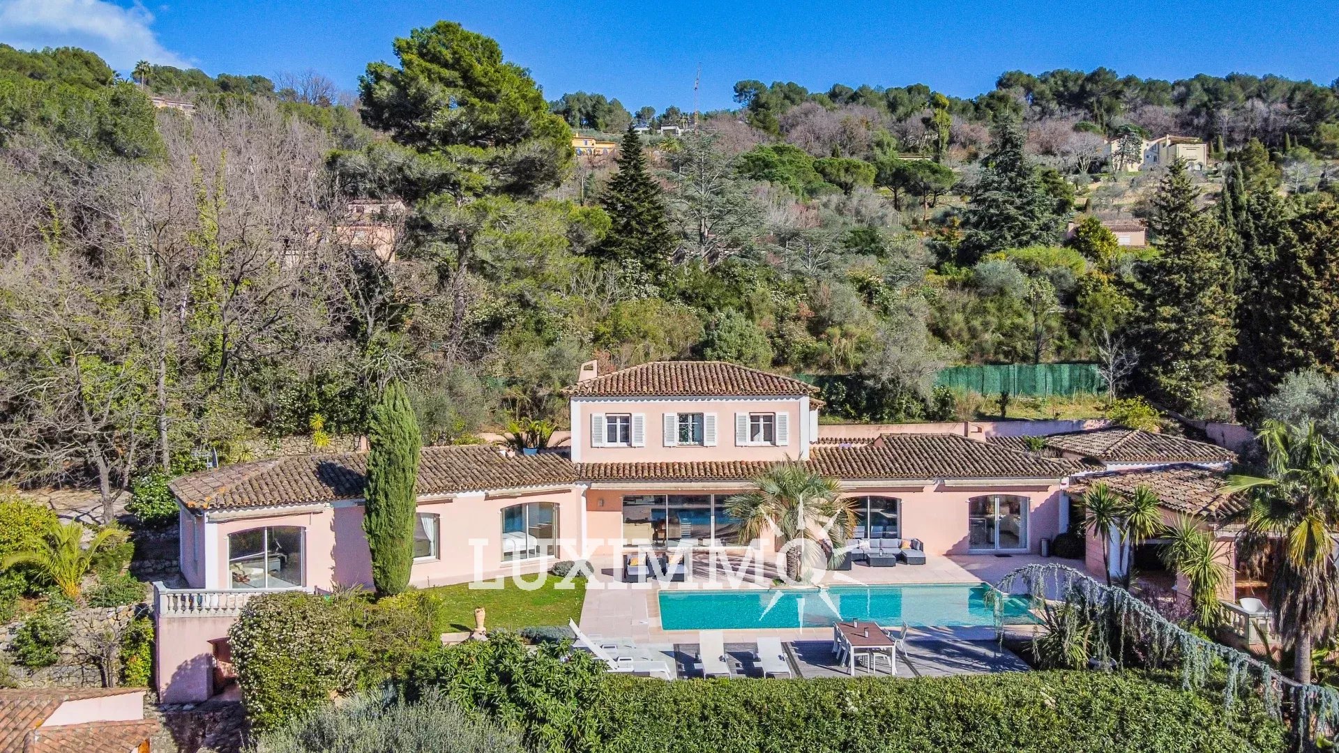 MOUANS-SARTOUX : Située en position dominante, dans un environnement calme et résidentiel, cette villa néo-provençale de 325m2 env. est édifiée sur un terrain de 7000m2 avec une piscine.