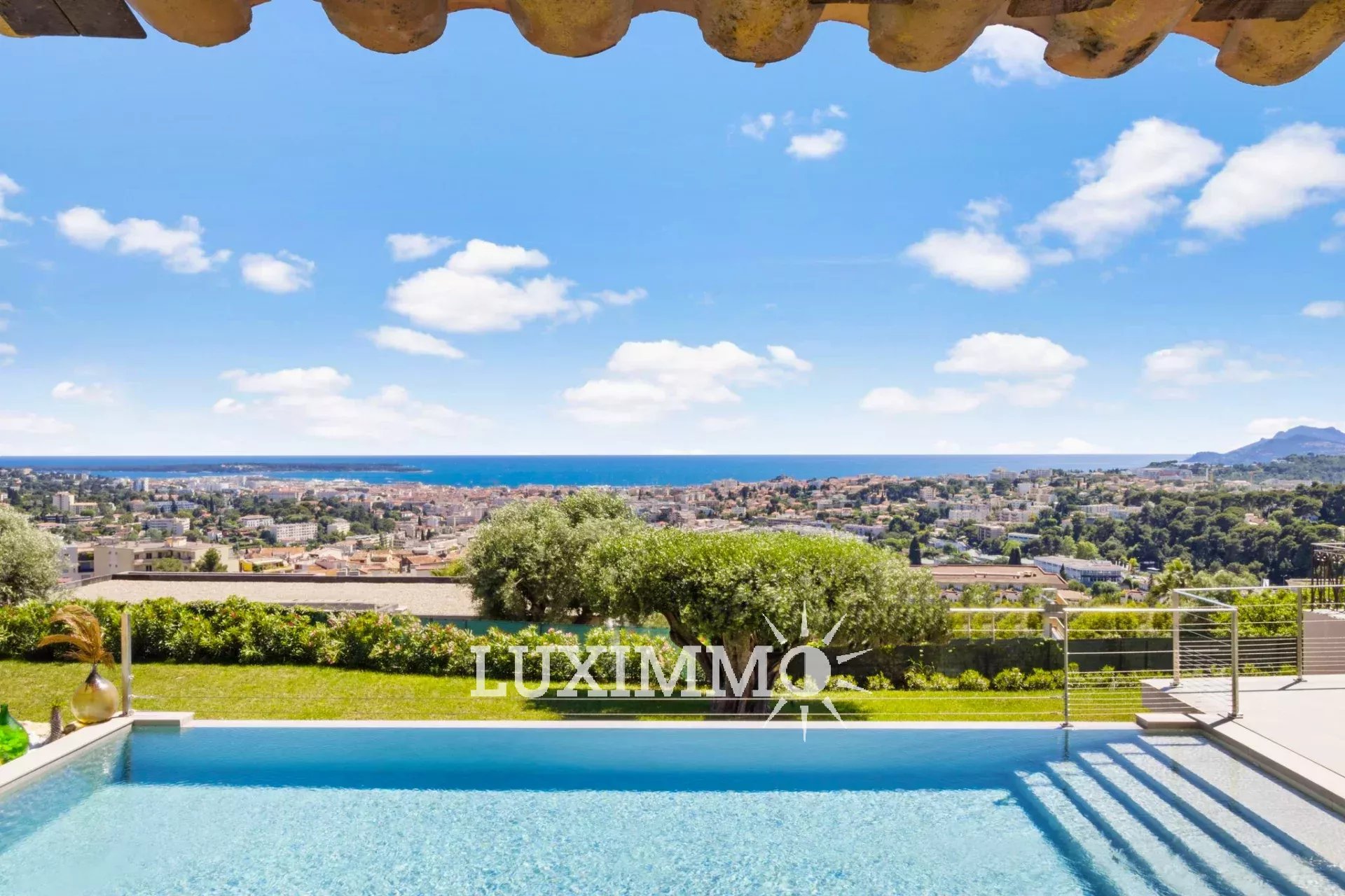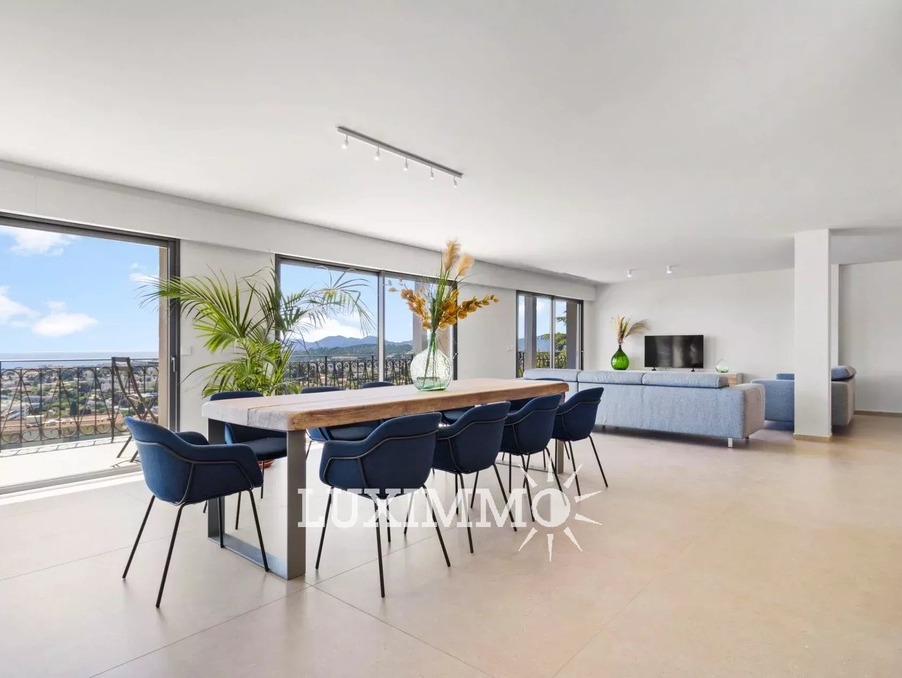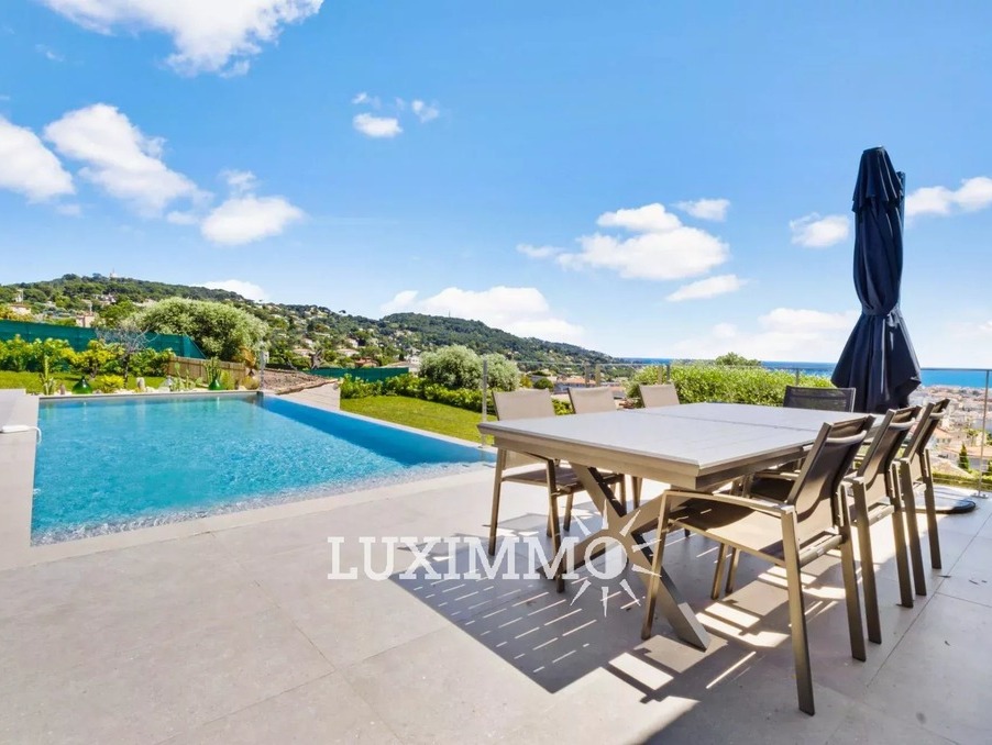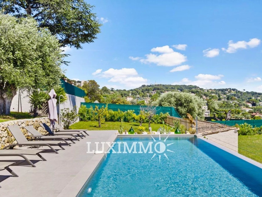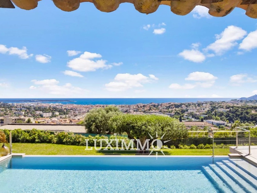 LE CANNET - Située au point culminant de la colline, bénéficiant du calme et d'une vue mer panoramique, cette villa entièrement rénovée de 300m² env. est édifiée sur un terrain de 1800m² env. avec piscine à débordement.