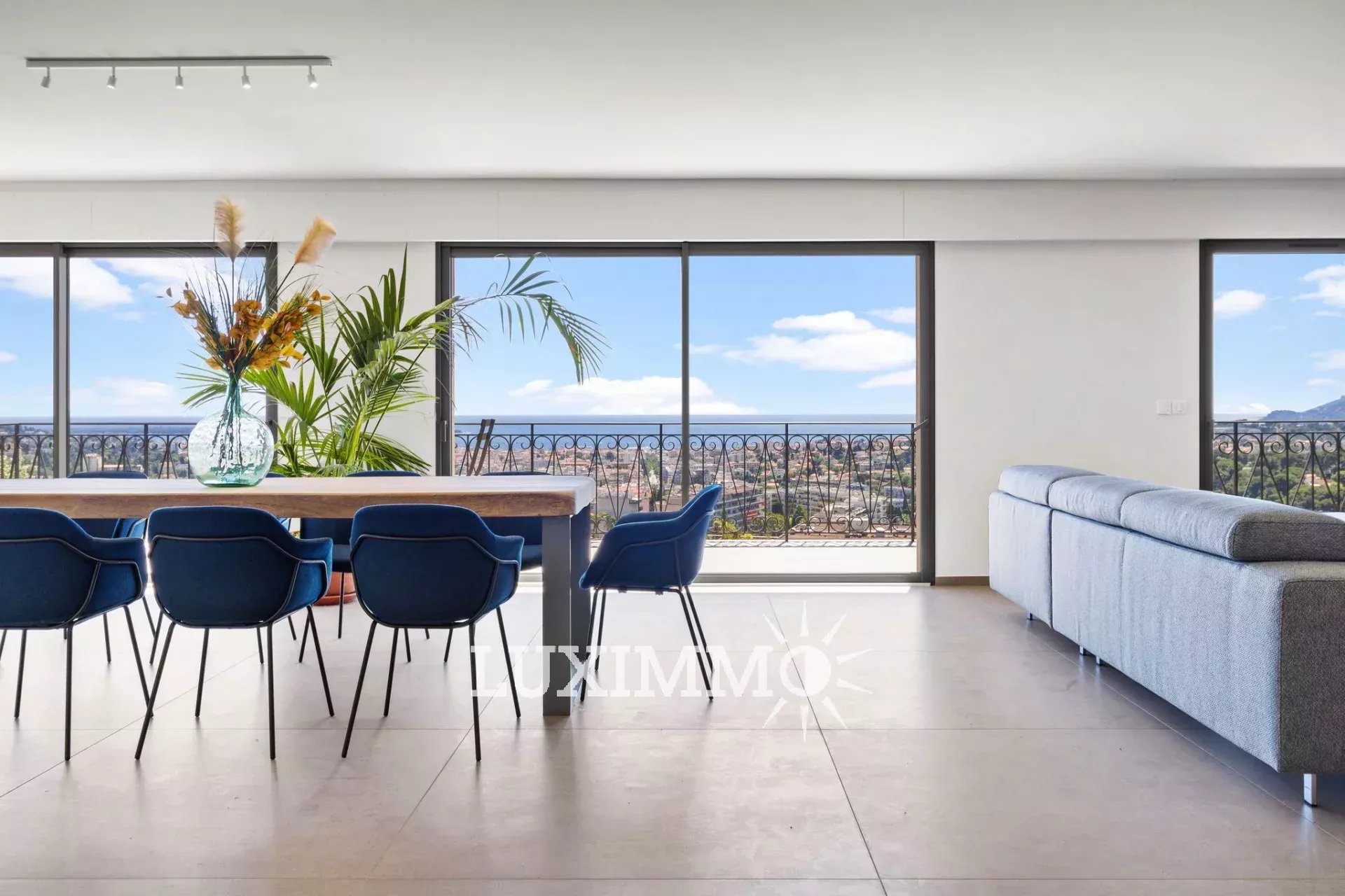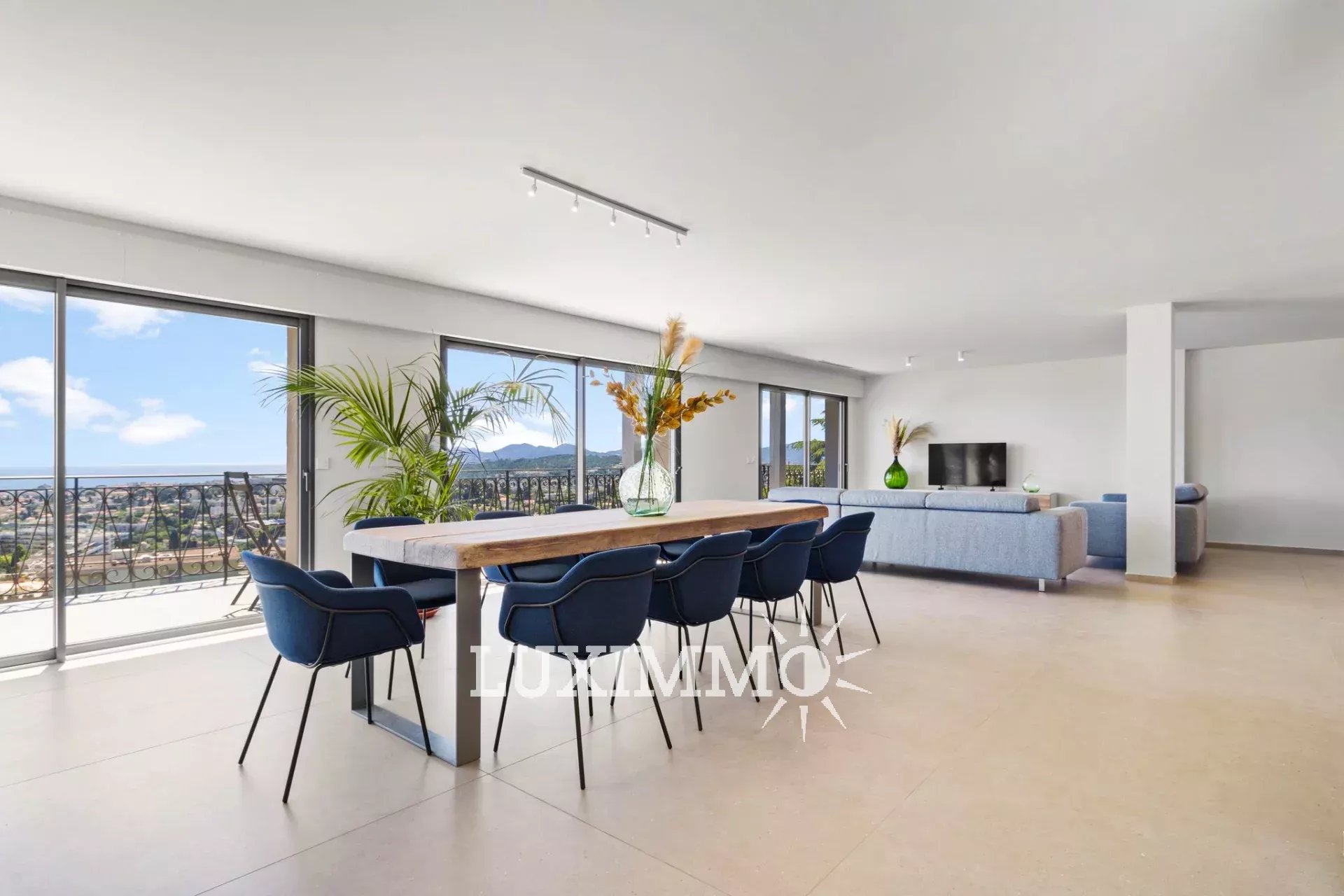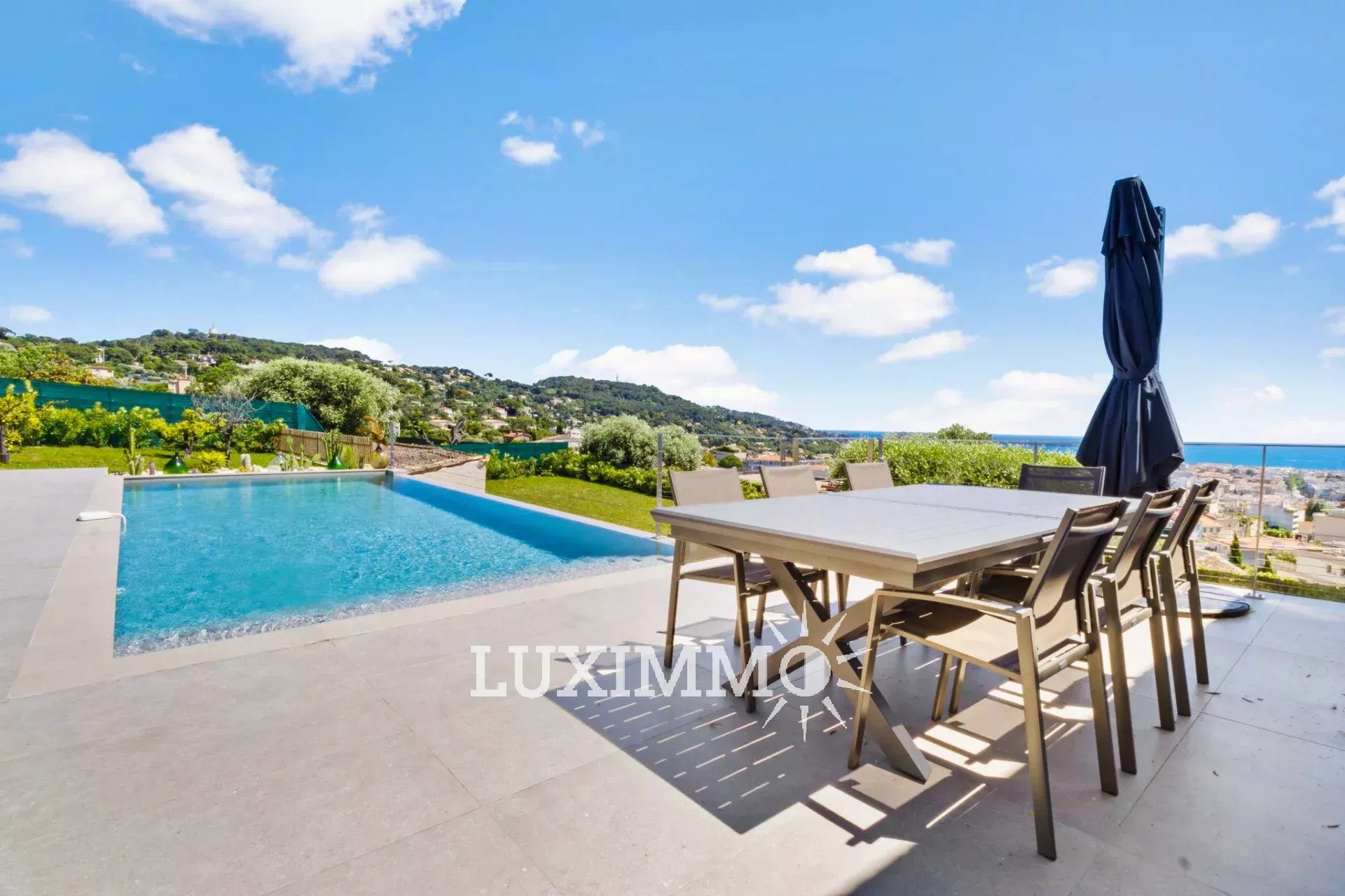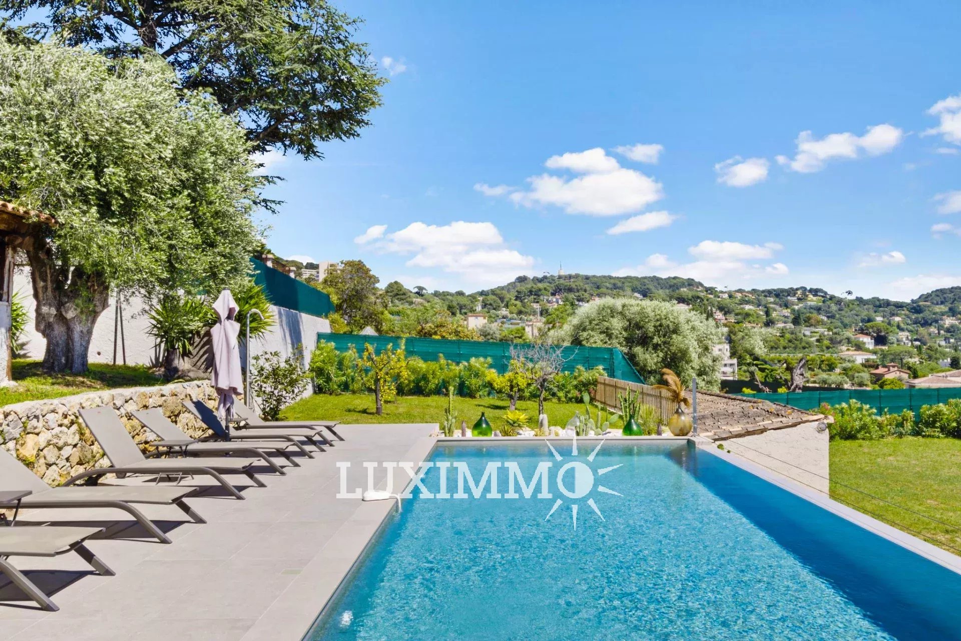 LE CANNET - Située au point culminant de la colline, bénéficiant du calme et d'une vue mer panoramique, cette villa entièrement rénovée de 300m² env. est édifiée sur un terrain de 1800m² env. avec piscine à débordement.