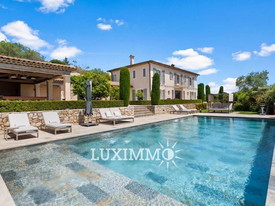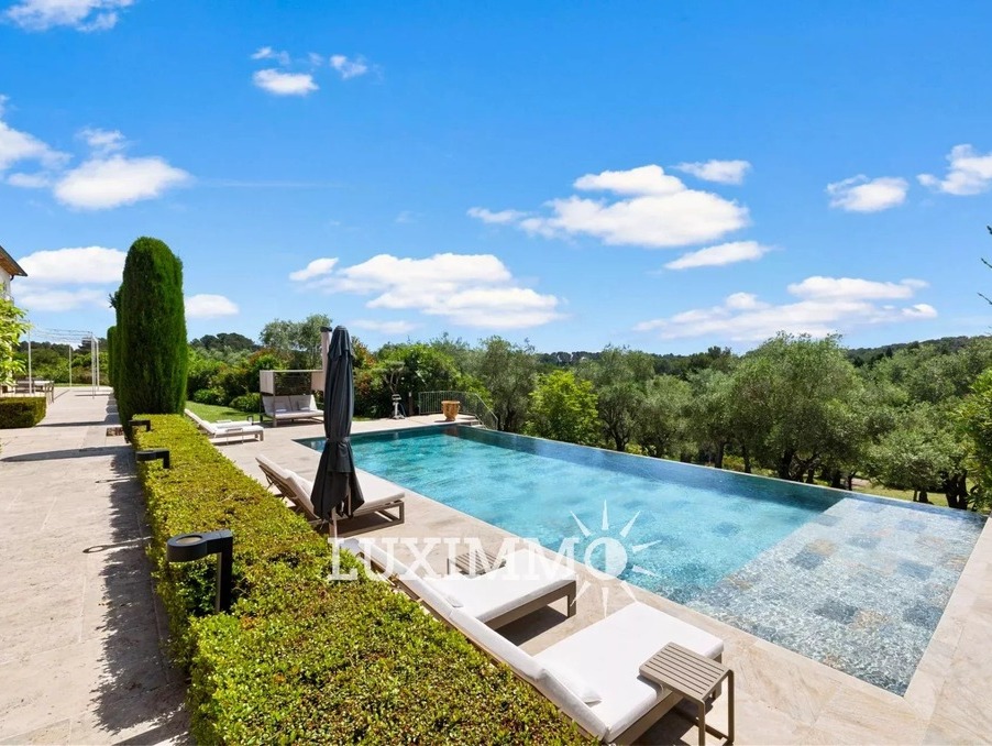 MOUANS-SARTOUX - Située dans un domaine fermé, en position dominante et au calme absolu, cette bastide aixoise de 360m² est édifiée sur un terrain de 6160m² avec piscine.