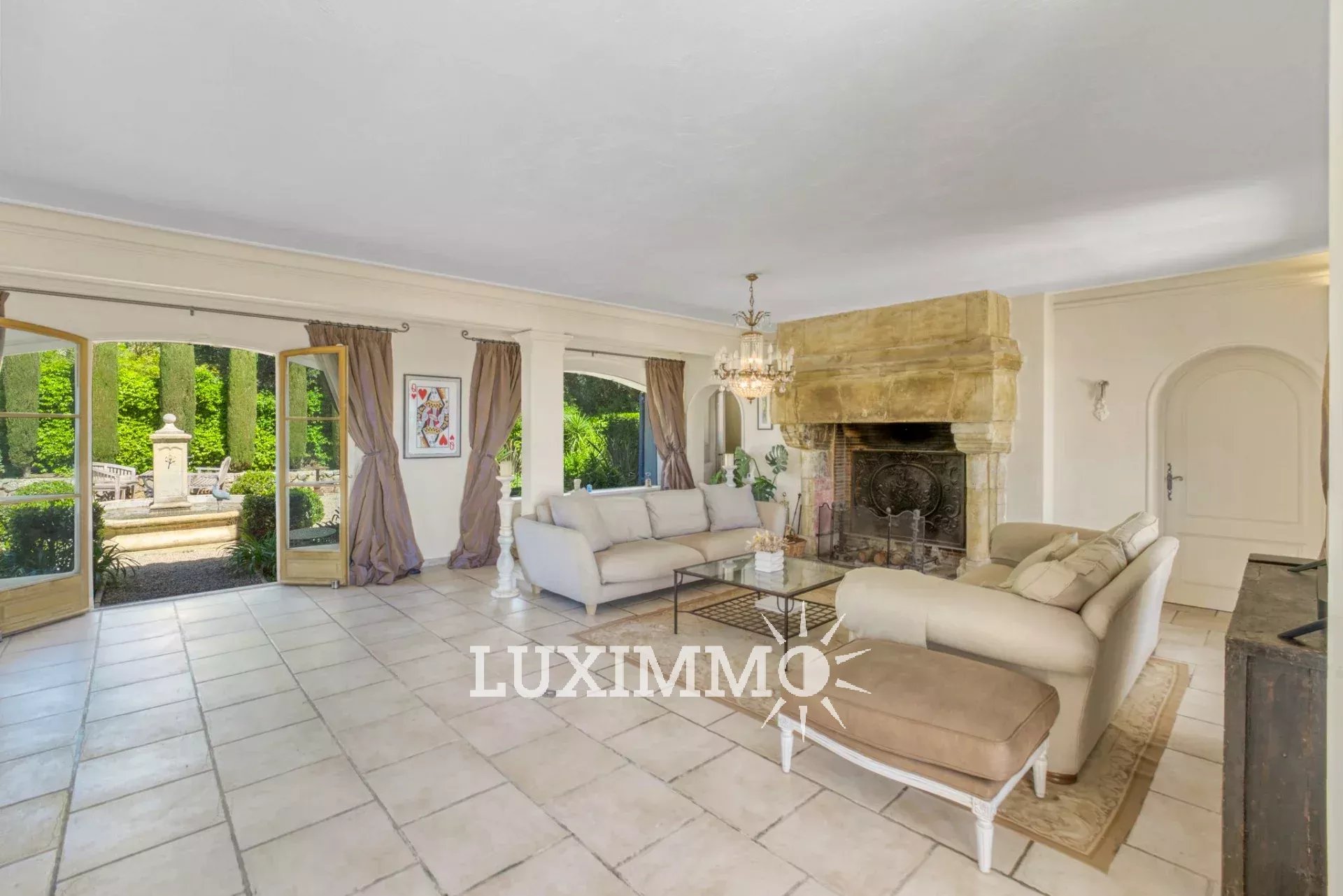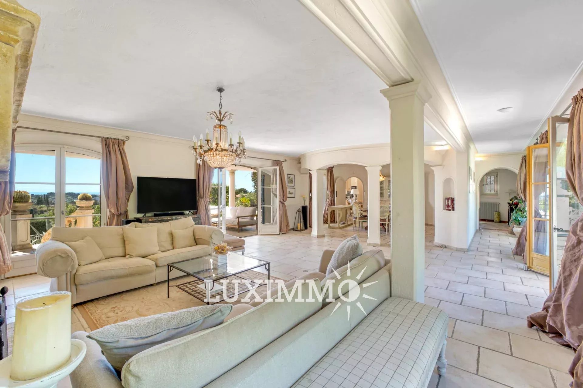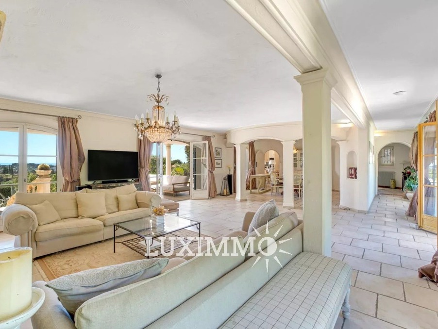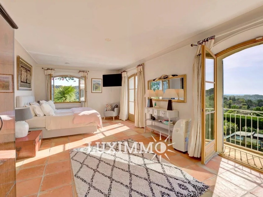 MOUGINS - Située au pied du village, à l'abri des regards, avec vue panoramique mer et collines, cette bastide provençale de 480m² env., est édifiée sur un terrain de 4200m² env. avec piscine.