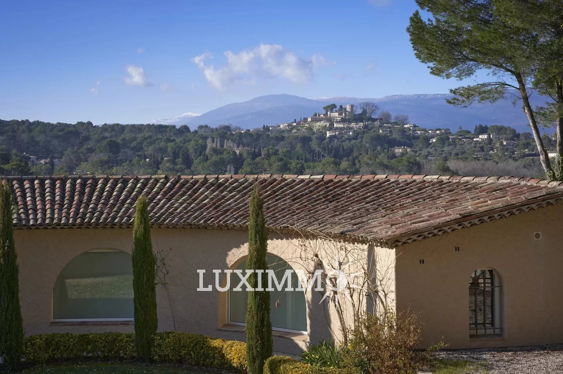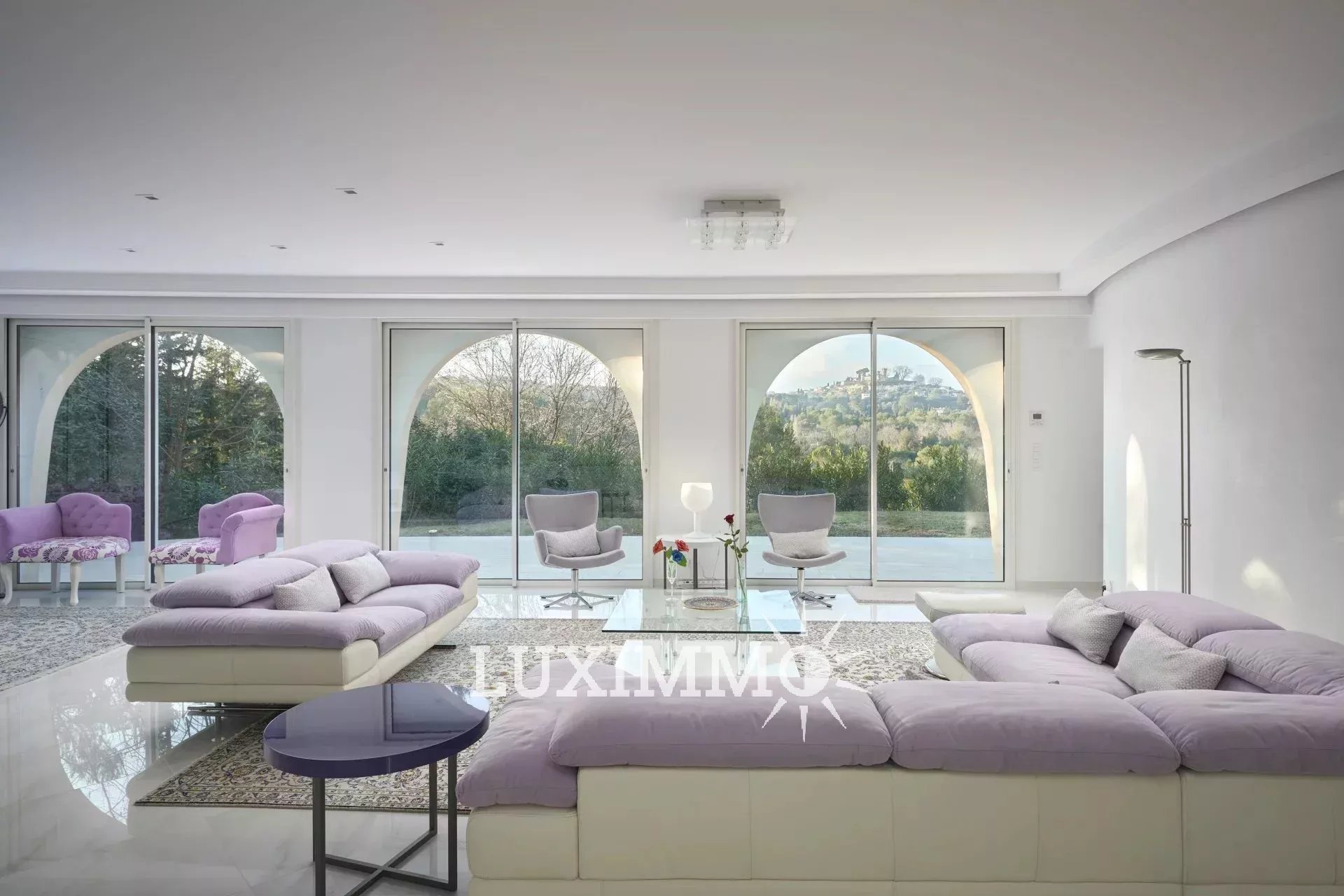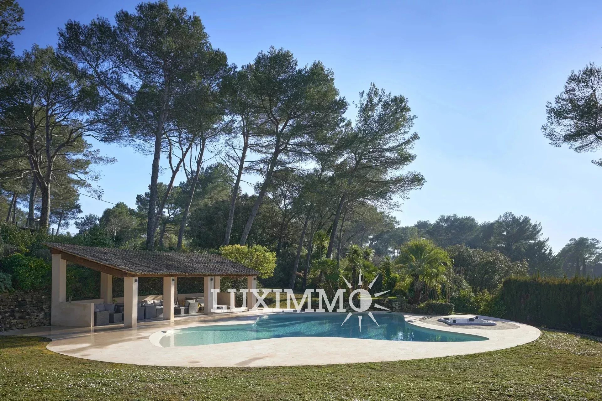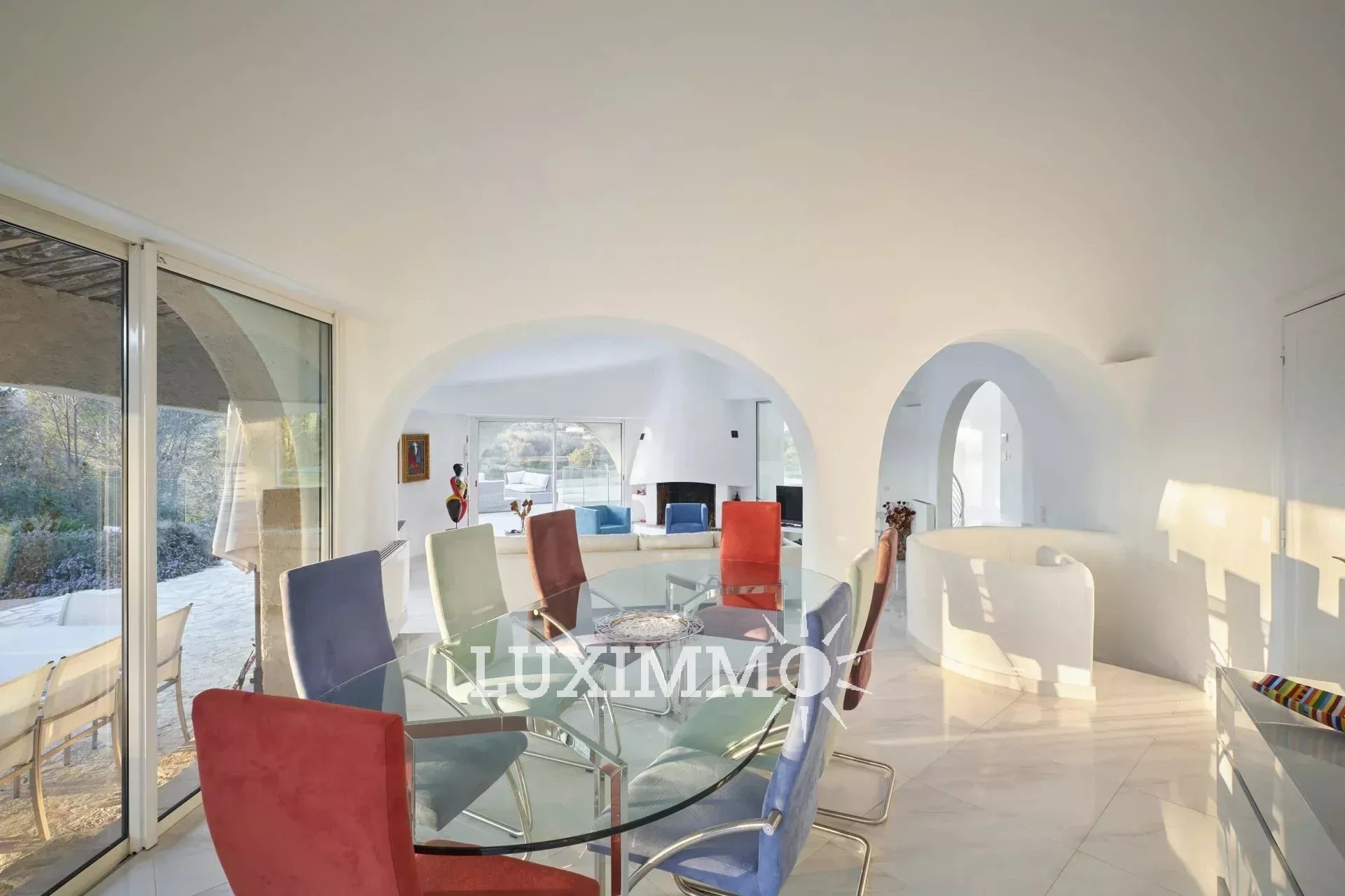 MOUGINS - située dans un secteur recherché pour son environnement et son calme, avec vue panoramique sur le village et les collines environnantes, cette propriété d'inspiration Couëlle de 540m² env. est édifiée sur une parcelle d'1 hectare avec piscine.