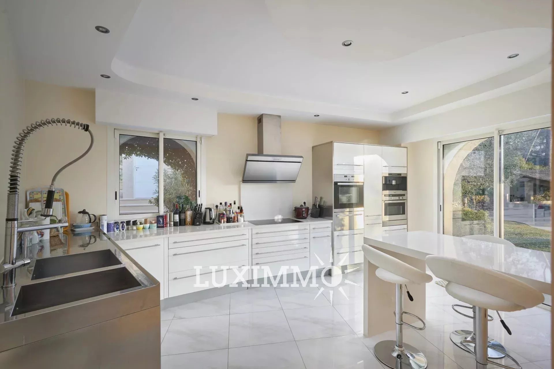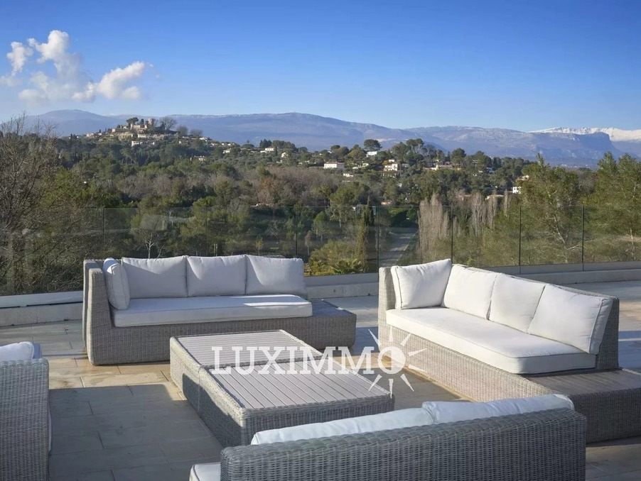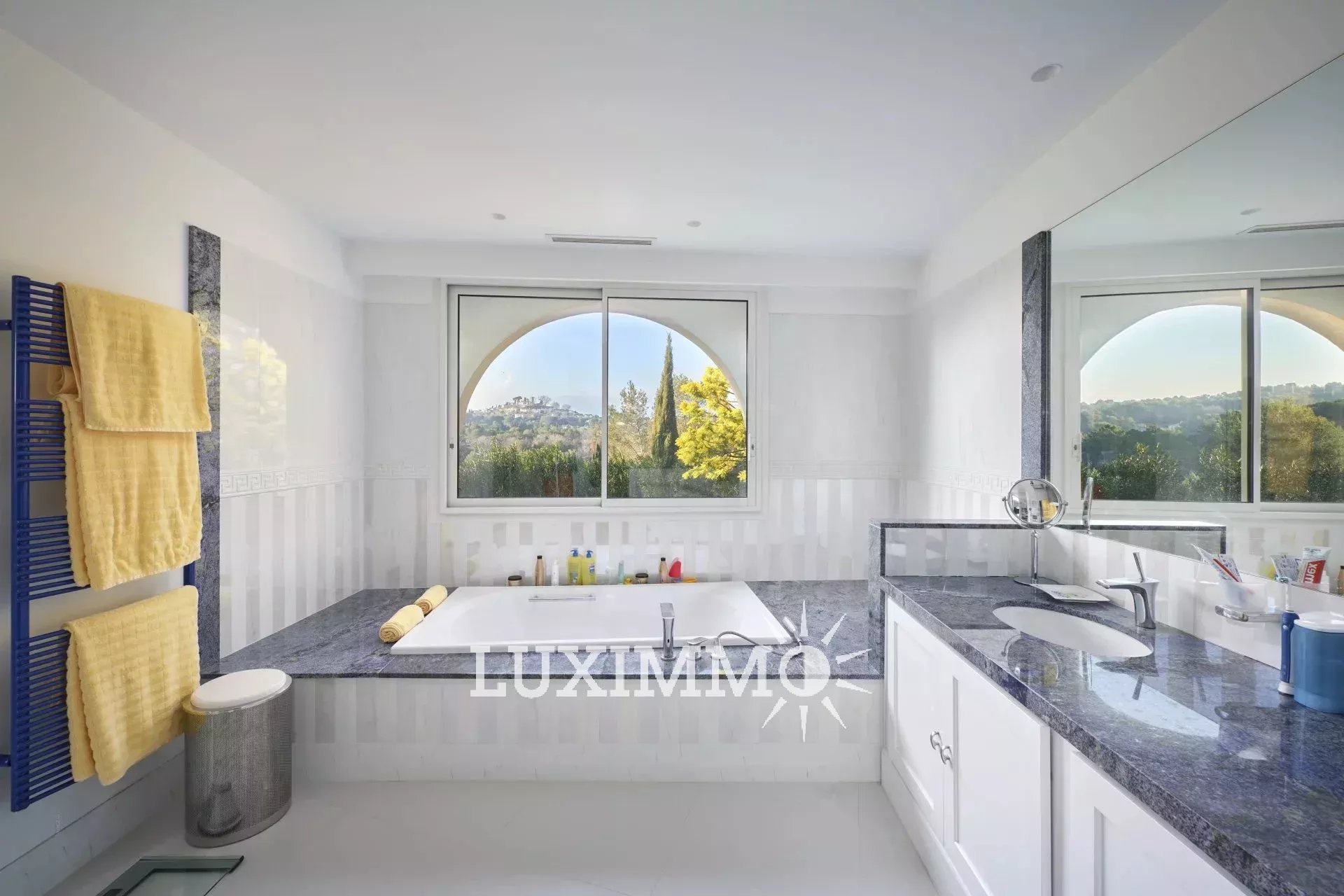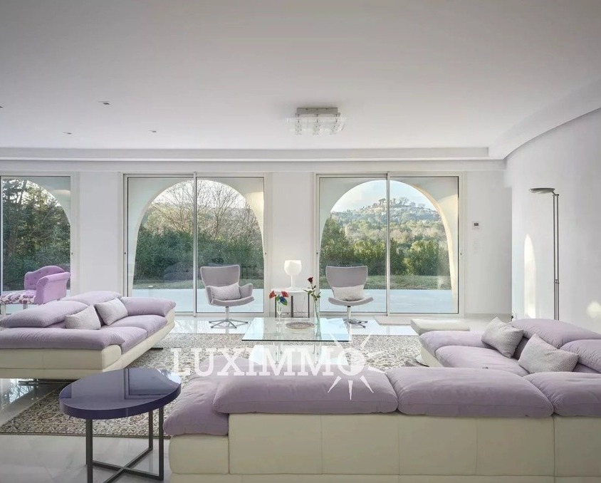 MOUGINS - située dans un secteur recherché pour son environnement et son calme, avec vue panoramique sur le village et les collines environnantes, cette propriété d'inspiration Couëlle de 540m² env. est édifiée sur une parcelle d'1 hectare avec piscine.