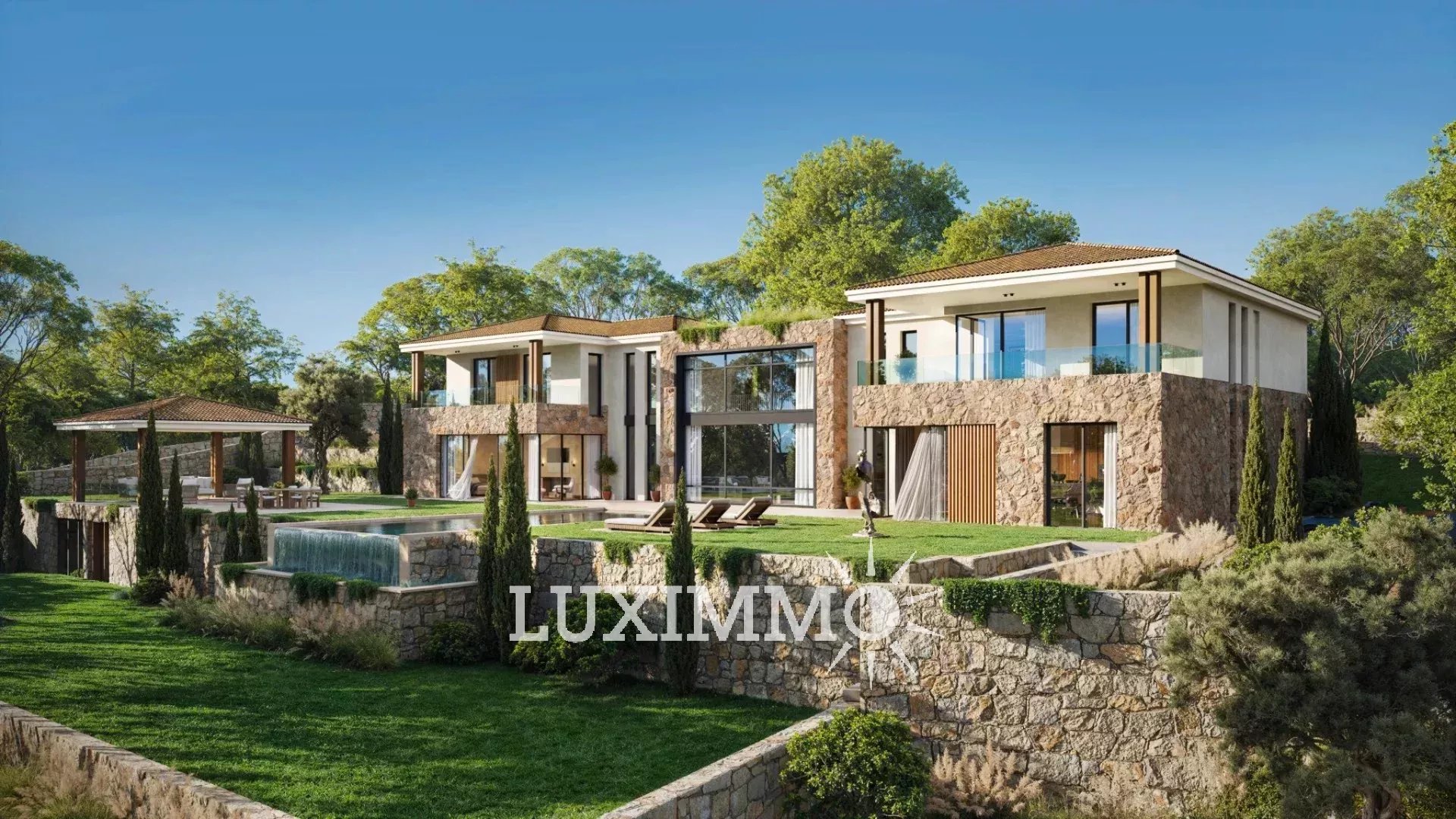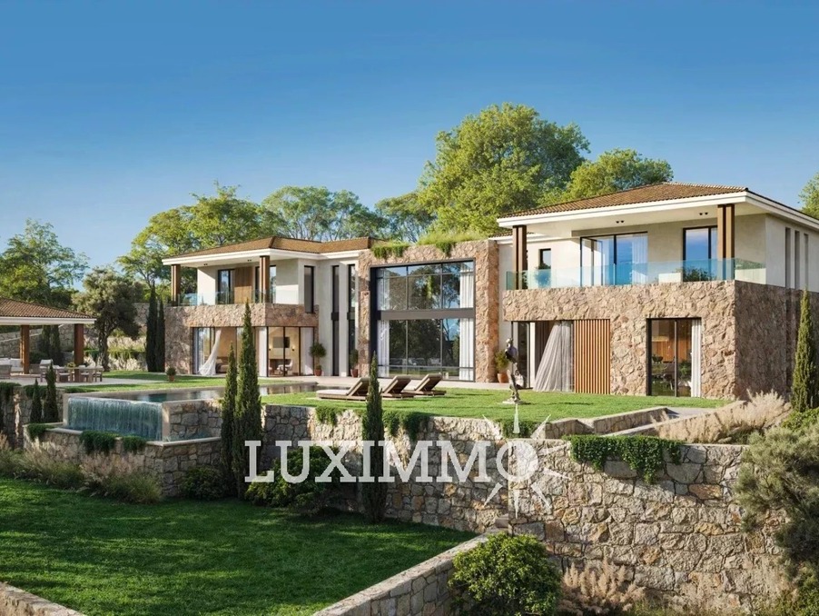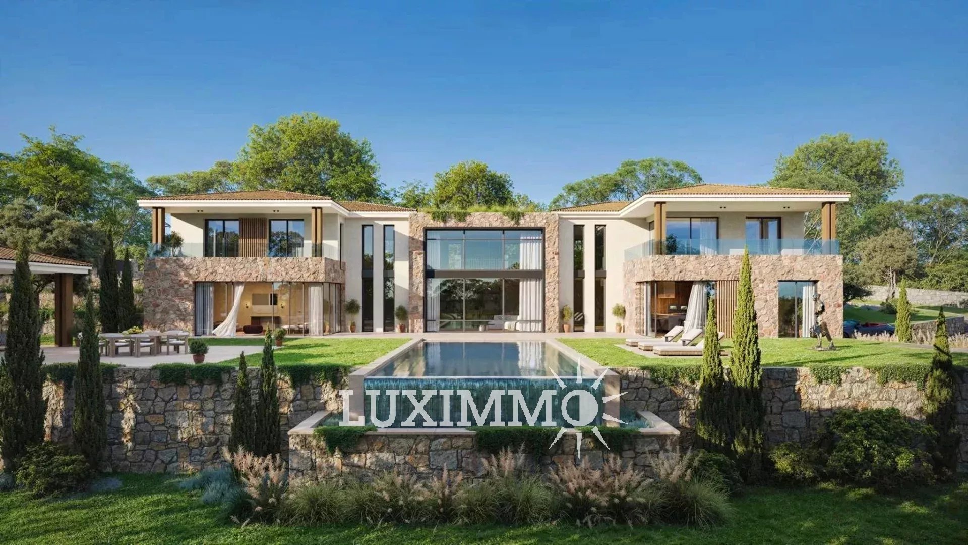 MOUGINS - Située dans le quartier le plus recherché, en position dominante, au calme, cette villa contemporaine de 769m² édifiée sur un terrain de 2872m² avec piscine.