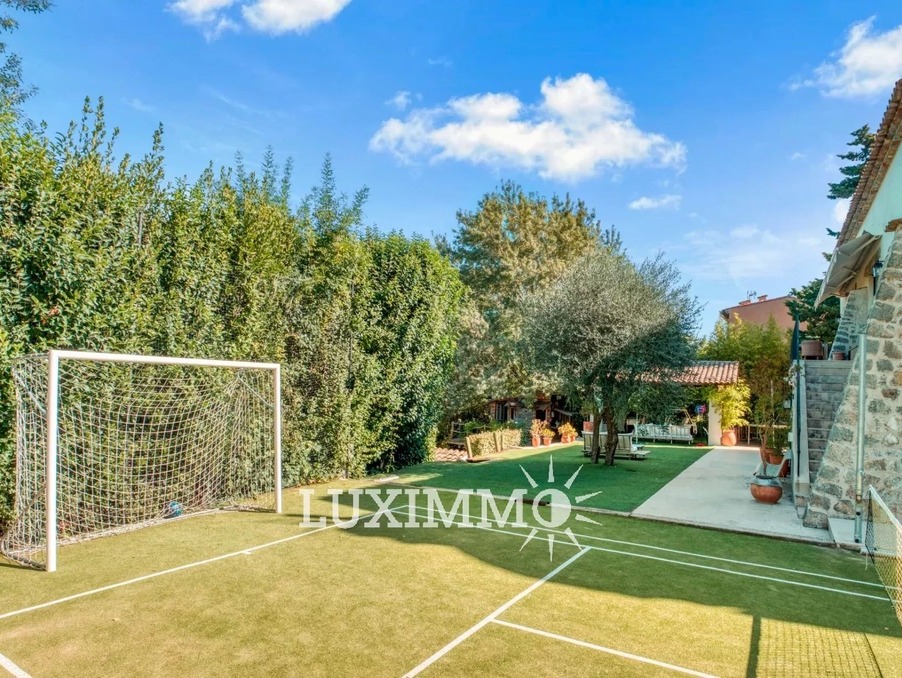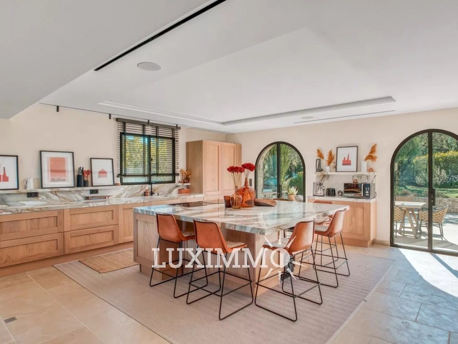 MOUGINS - Située dans un environnement verdoyant, à proximité immédiate des premiers commerces, cette villa de 265m² est entièrement rénovée avec des matériaux de qualité. Elle est édifiée sur un terrain paysager de 1800 m² avec piscine.