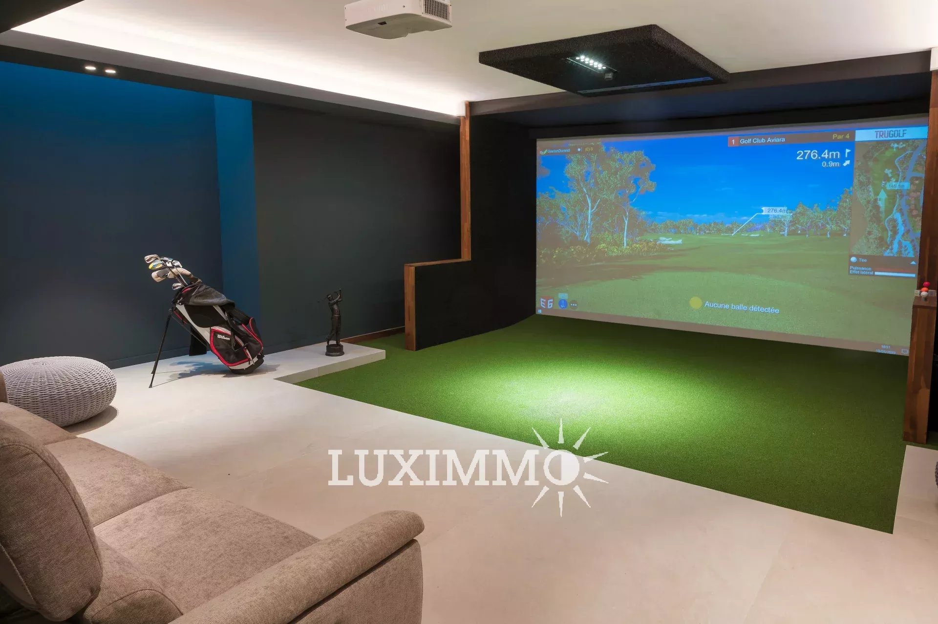 Au sous-sol : studio indépendant avec 1 cuisine et 1 chambre en suite, 1 espace buanderie, 1 salle de cinéma avec un simulateur de golf, 1 jacuzzi et 1 hammam.