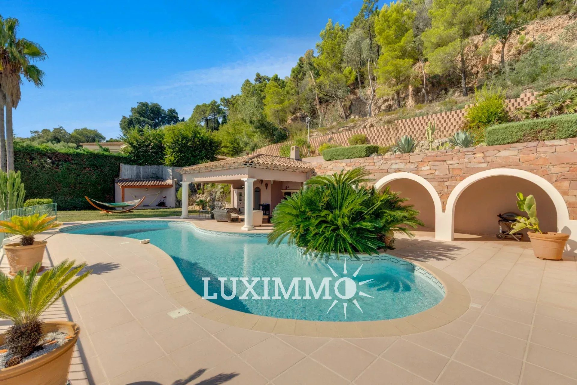 THEOULE-SUR-MER – Située en position dominante, dans un écrin de verdure, à quelques minutes des plages, cette villa de 340m² env. avec 138m² d'annexes, est édifiée sur un terrain de 4280 m² avec piscine et pool house.