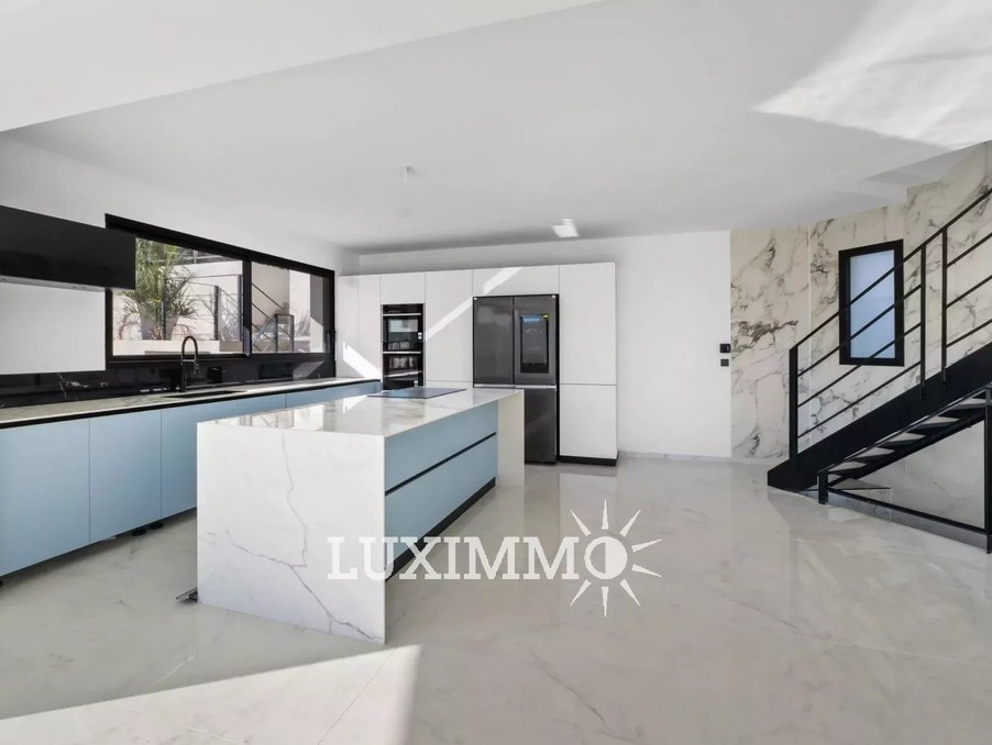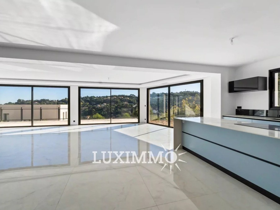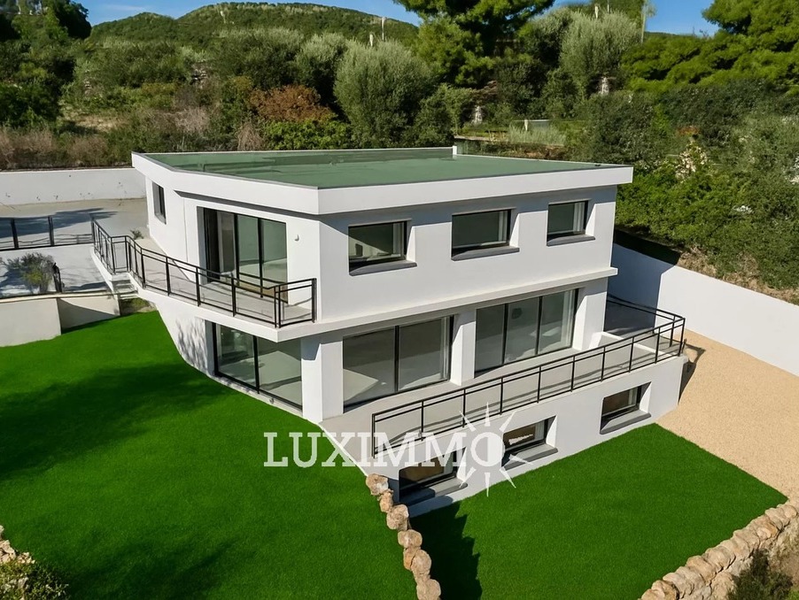 VALLAURIS - Située en position dominante, bénéficiant d'une vue panoramique sur la mer et les collines environnantes, cette villa contemporaine neuve d’environ 200 m² est édifiée sur un terrain de 900m2 avec piscine.