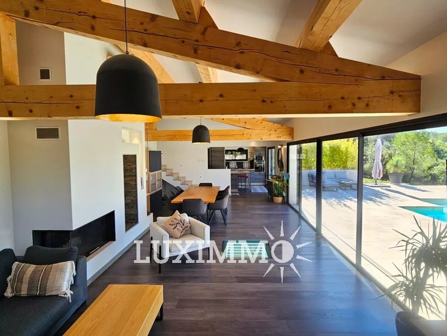VIDAUBAN – Située dans un environnement calme et verdoyant, cette villa contemporaine de 200 m² env. est édifiée sur un terrain paysager de 2250 m² et bénéficie d’une exposition plein sud sans aucune nuisance.