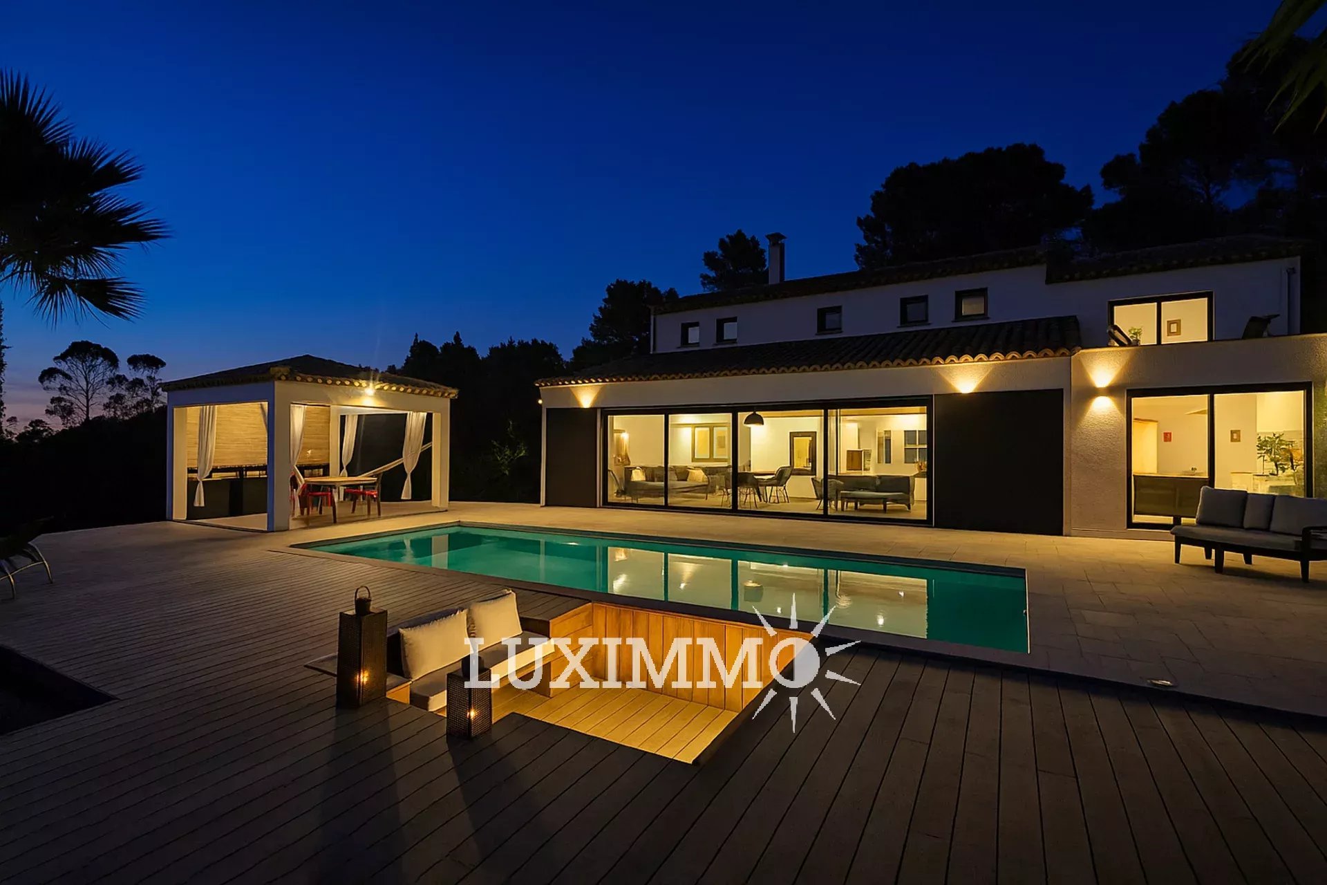 À l’extérieur : Une terrasse moderne de 200 m² avec SPA haut de gamme 5 places, filet catamaran, bar convivial et piscine chauffée. Un pool house tout équipé avec barbecue, plancha, réfrigérateur extérieur et rétroprojecteur.