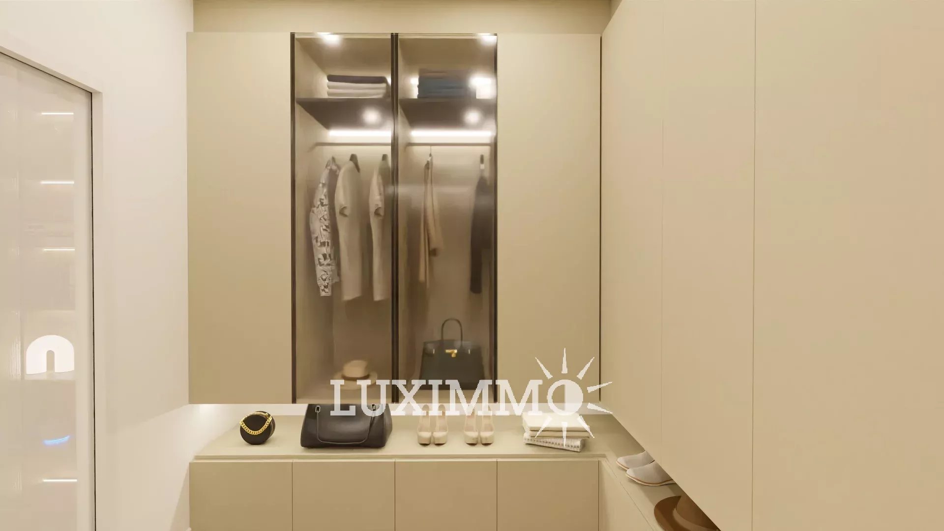 Au niveau principal de vie : Un large salon-séjour de 75m2, 1 cuisine équipée, 1 chambre de maitre de 21m2 avec sa salle de bain et son dressing. Ce niveau donne sur l'espace piscine.